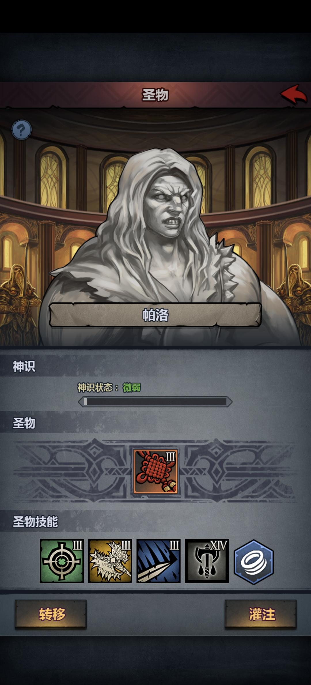 ⭐在修建了对应神像之后,每年可点击神识条右侧的双手按钮对其祭拜增加神识,左下角也可设置自动祭拜,每年12月过到1月时祭拜 ⭐神识足够时可以点击祭拜右侧的加号键进行灌注圣物及激活,升级圣物技能的操作,大约五年顶拜能升级一次 ⭐激活后的技能可以在点击圣物界面处进行装备,总共四个技能槽,每个槽的技能类型都不同,可根据需要装备技能 ⭐可以在角色换装界面快速更换技能,不必进入神殿 怎么样,是不是很有帮助呢?