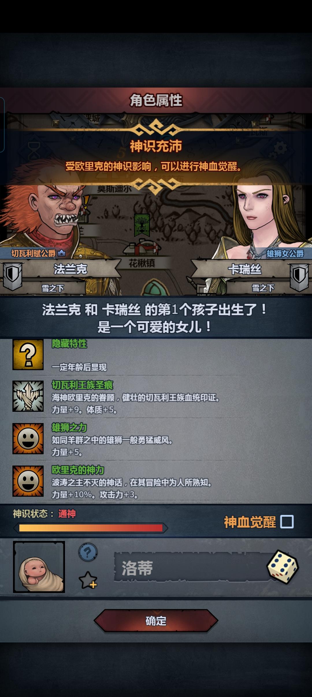 本人萌新才玩一周,来回开了四五个号也查了论坛不少攻略,这游戏核心就是血统,血统越nb,属性就会越好,爵位越高的npc一般血统越nb。 开局推剧情都是比较简单的,尽量在低等级的情况专职,每五级能领悟一个职业技能。加速可以直接加,每年去一趟酒馆看看,如果有5级以下银币要求过百的可以拿,属性一般很不错。队伍也要稍微练一下不然后面小公主暂时离队会很难打。 然后就是重点了,小公主。前期打怪全靠小公主活的久属