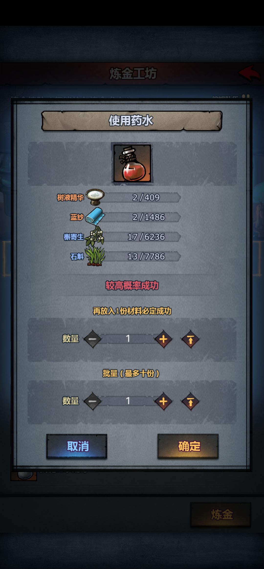结论: 2级瓶子+6炼金术士=辉月4份材料必成 3级瓶子+6炼金术士=药水2份材料必成 3级瓶子+3炼金术士=辉月4份必成 其他材料必成份数对比无神器无影响 3级瓶子+6炼金提升45.4%概率 附图