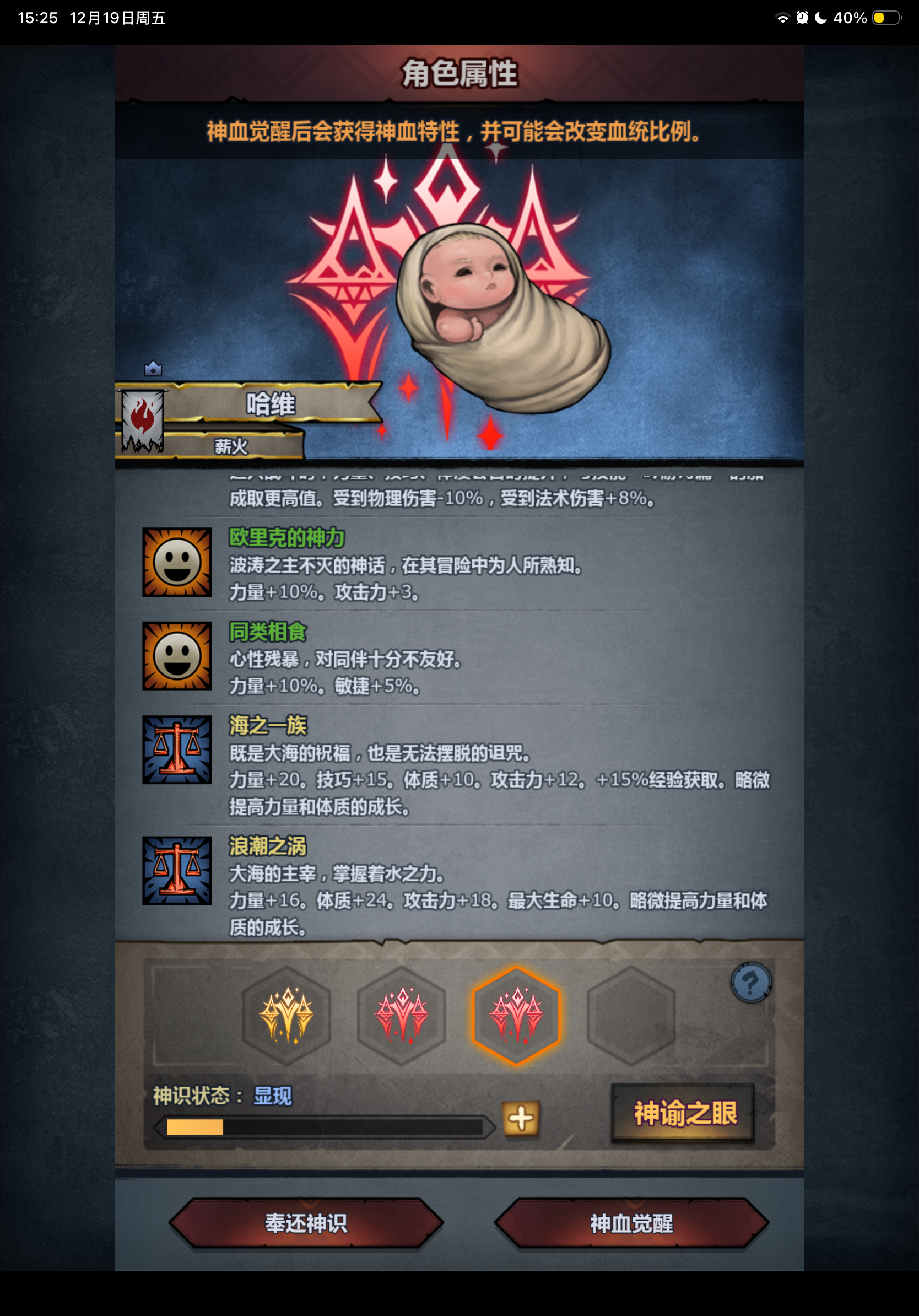 谁骗我精灵内宗没伤害的,100级二级法圣已经可以胜任内宗的工作了,简简单单带长虹两回合刷个日塞。比我想象中伤害高非常多在6000左右,我满级赛神内宗和精灵内宗完全拉不开差距。这个面板算感转攻是440攻击力吗,目前440感知。