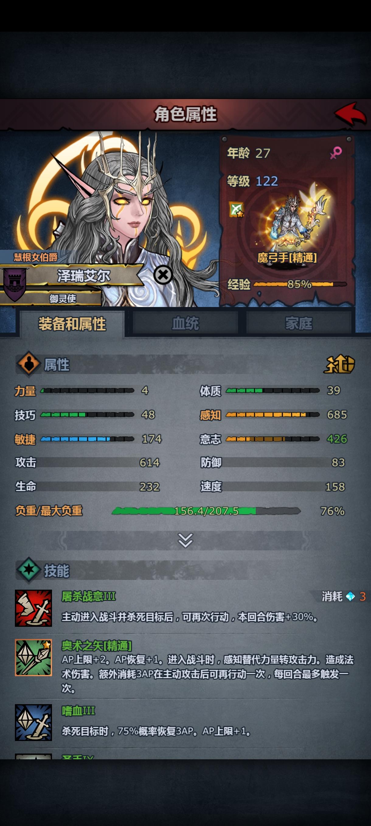 敏捷成长有0.886挺高,凑凑应该能有150敏捷,那就别浪费。(假设全吃魔弓,职业0.2586加面板0.8861满级可以加104敏,学校学了栋梁加优雅11敏,刺客加12,帽子加饰品加8,传家宝加20,小技能可以加13敏,可以凑够150敏)二槽技能学五级的闪避或者危险感知,搭配三级晨光(三级法拉甲也能适合)应该能保证存活,准备就这么干了,这样被动回合被打是可以保证满回蓝的。说明:圣物对法利姆
