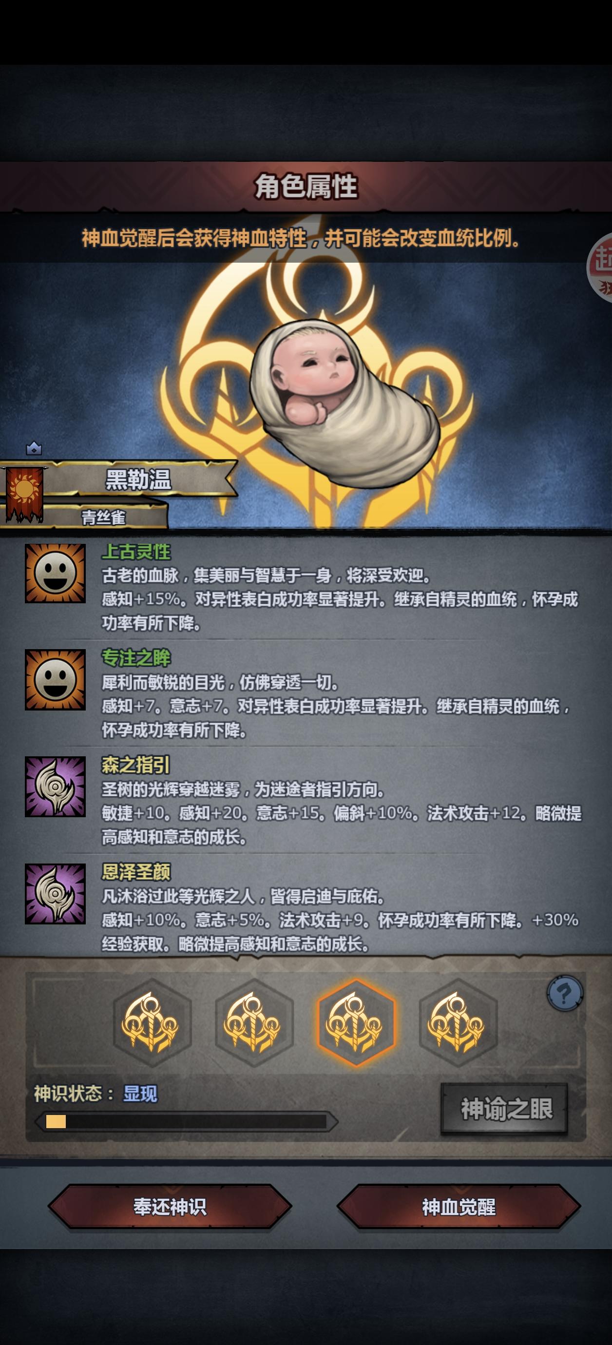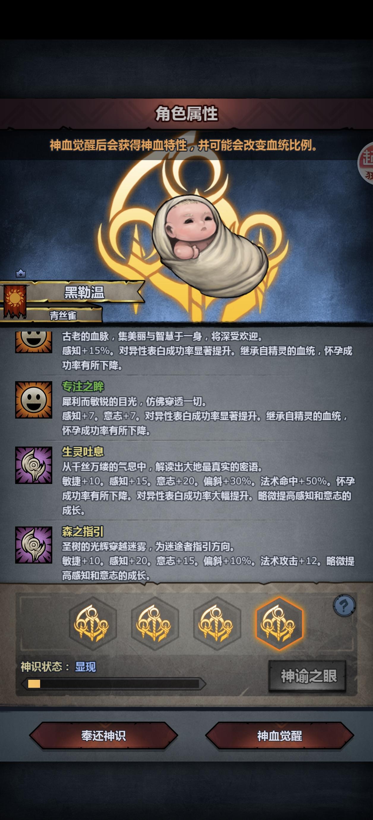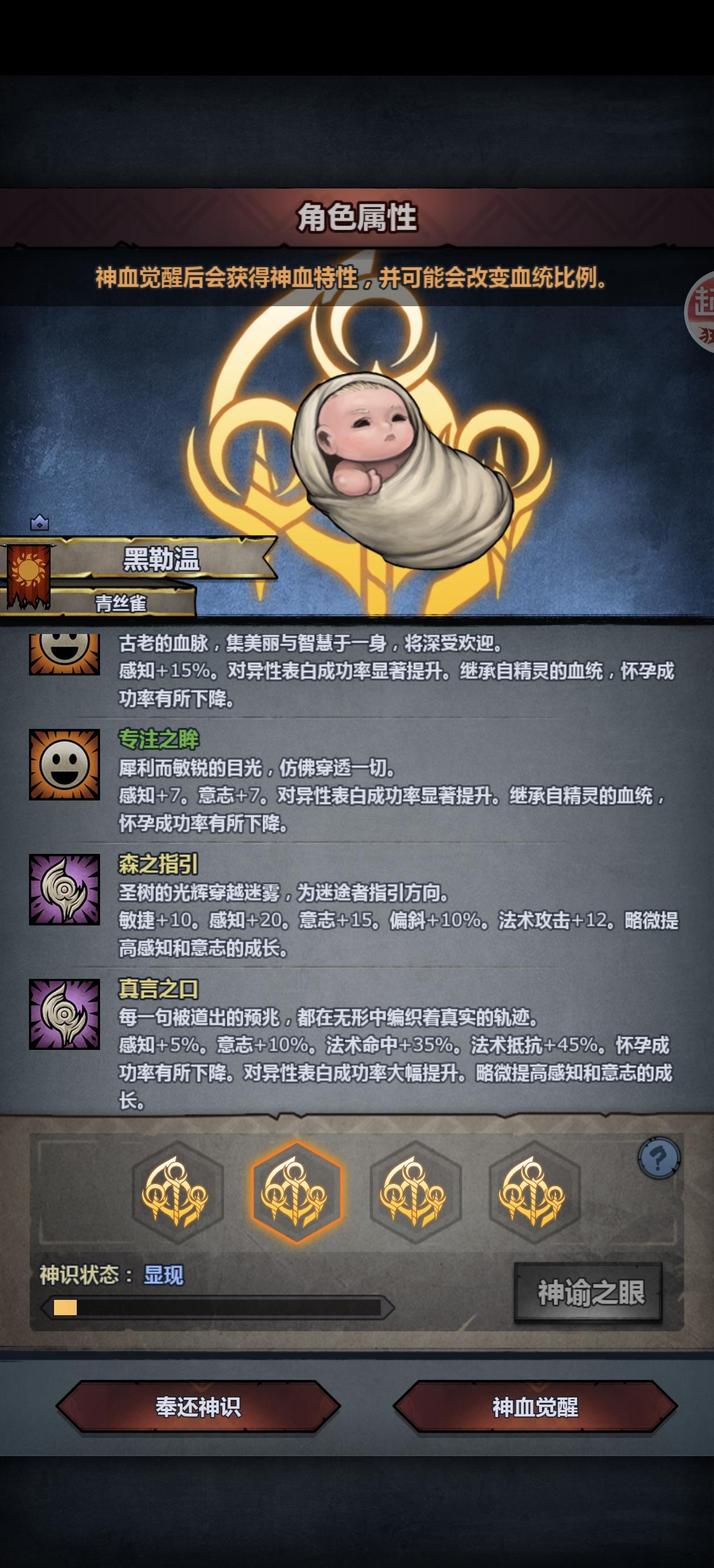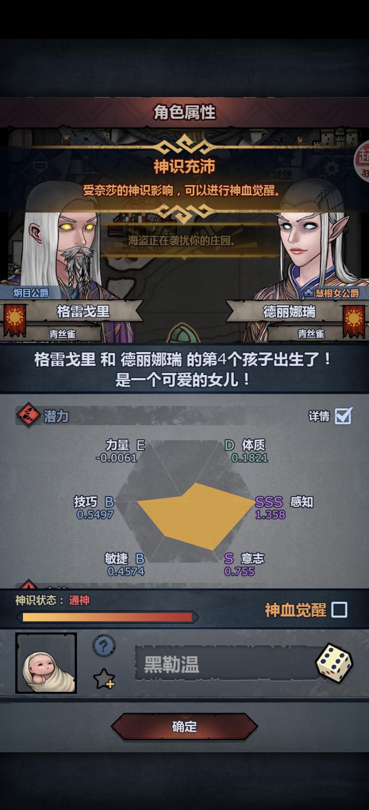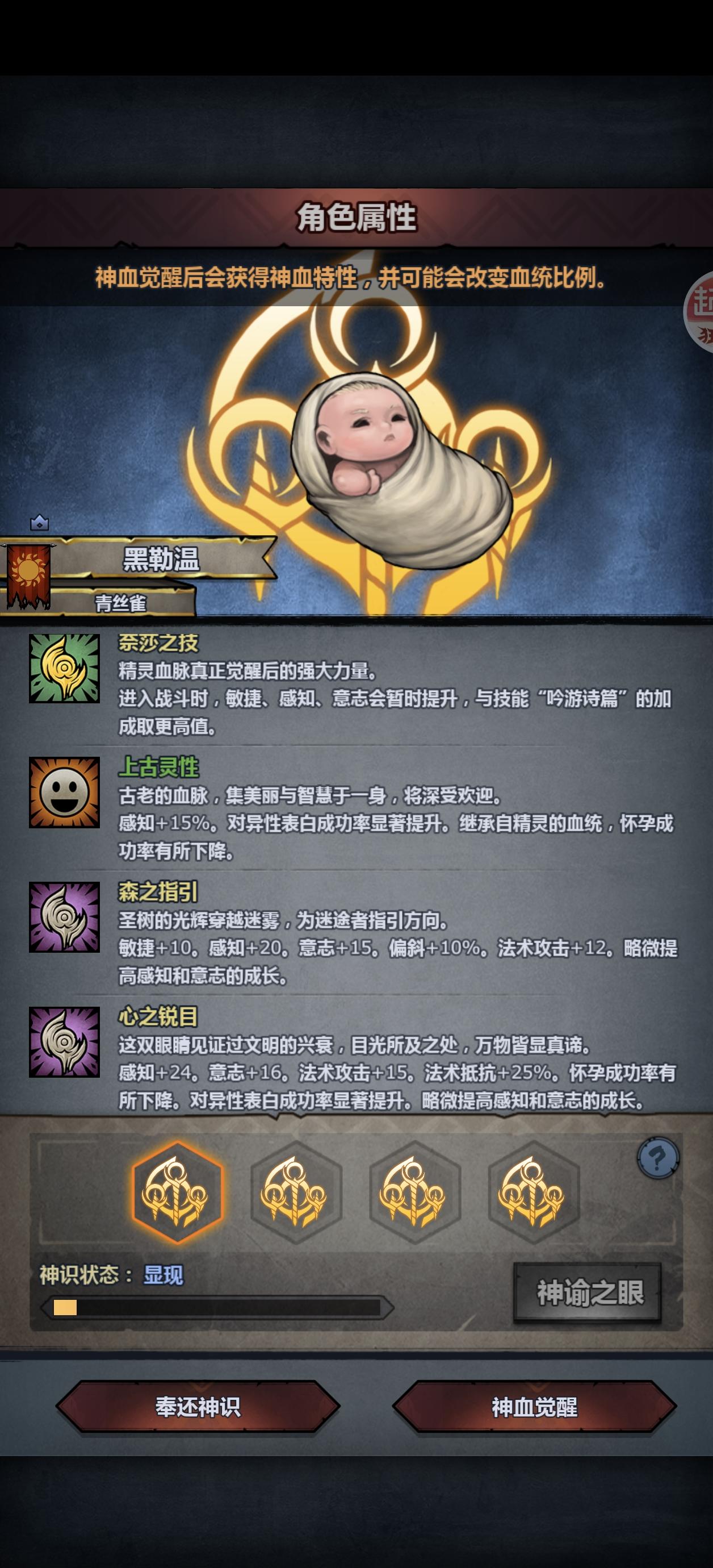 关于捏脸数据与精灵血脉的关系多次重开测试:发色2/脸型43/眉毛17/眼睛33/鼻子17/嘴巴33/耳朵2/头发11/胡须13/这是多次重开之后最稳的捏脸数据,五次用这个数据重开,老大稳定五次25血且属性都一样c体b感c意。老二及老三不稳定,老二三次12血,一次25血,老三2次25血,一次37血,期间也多次更改某一变量,如两次脸型数据更改为17,三子血脉随机,但老大两次都是无血,脸型数据更改