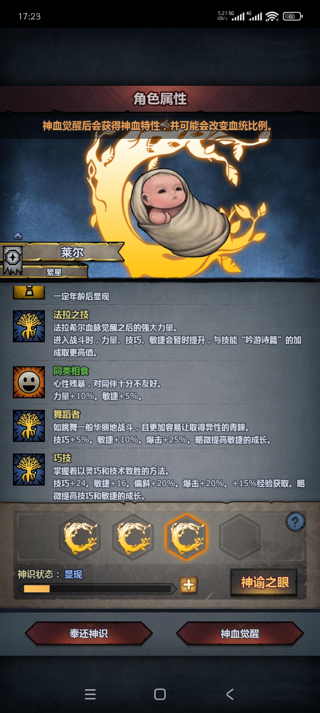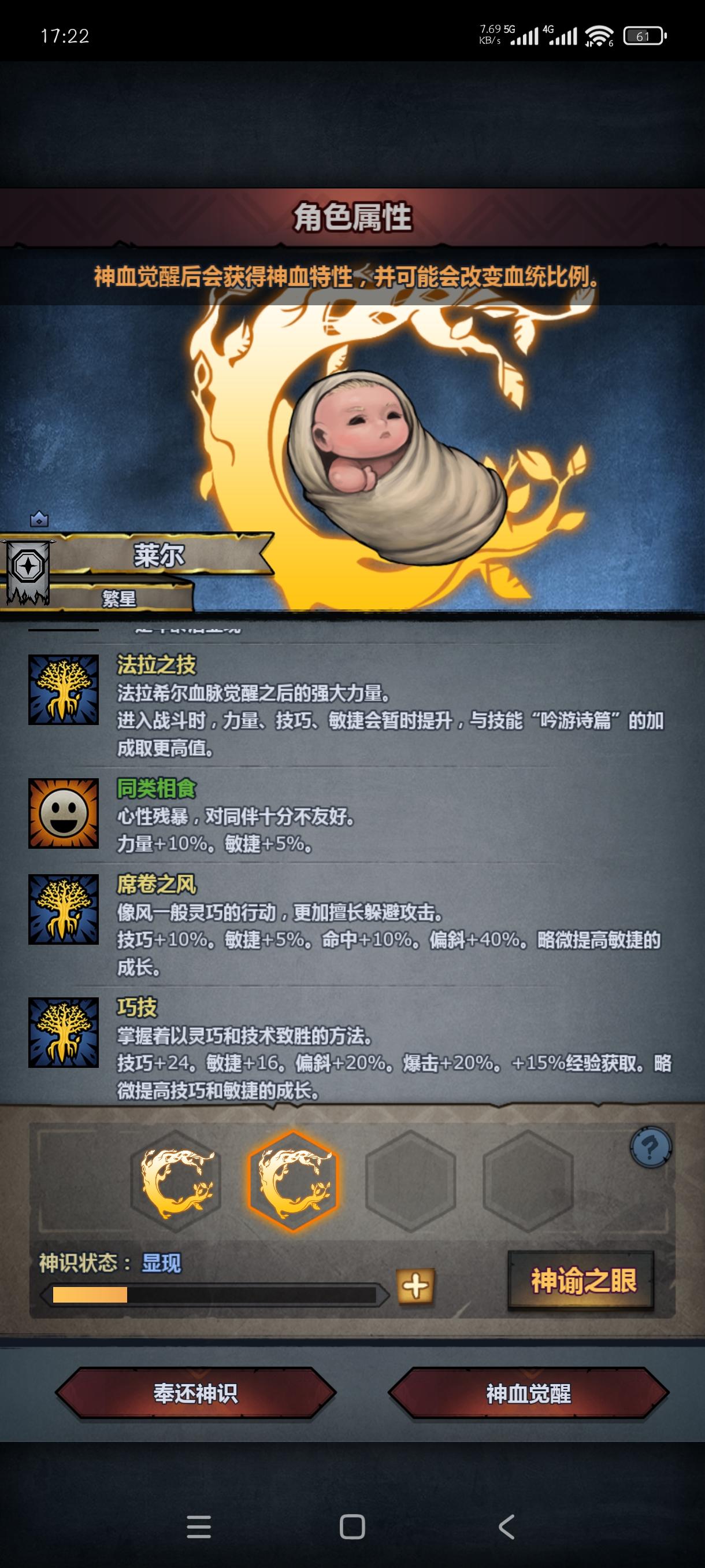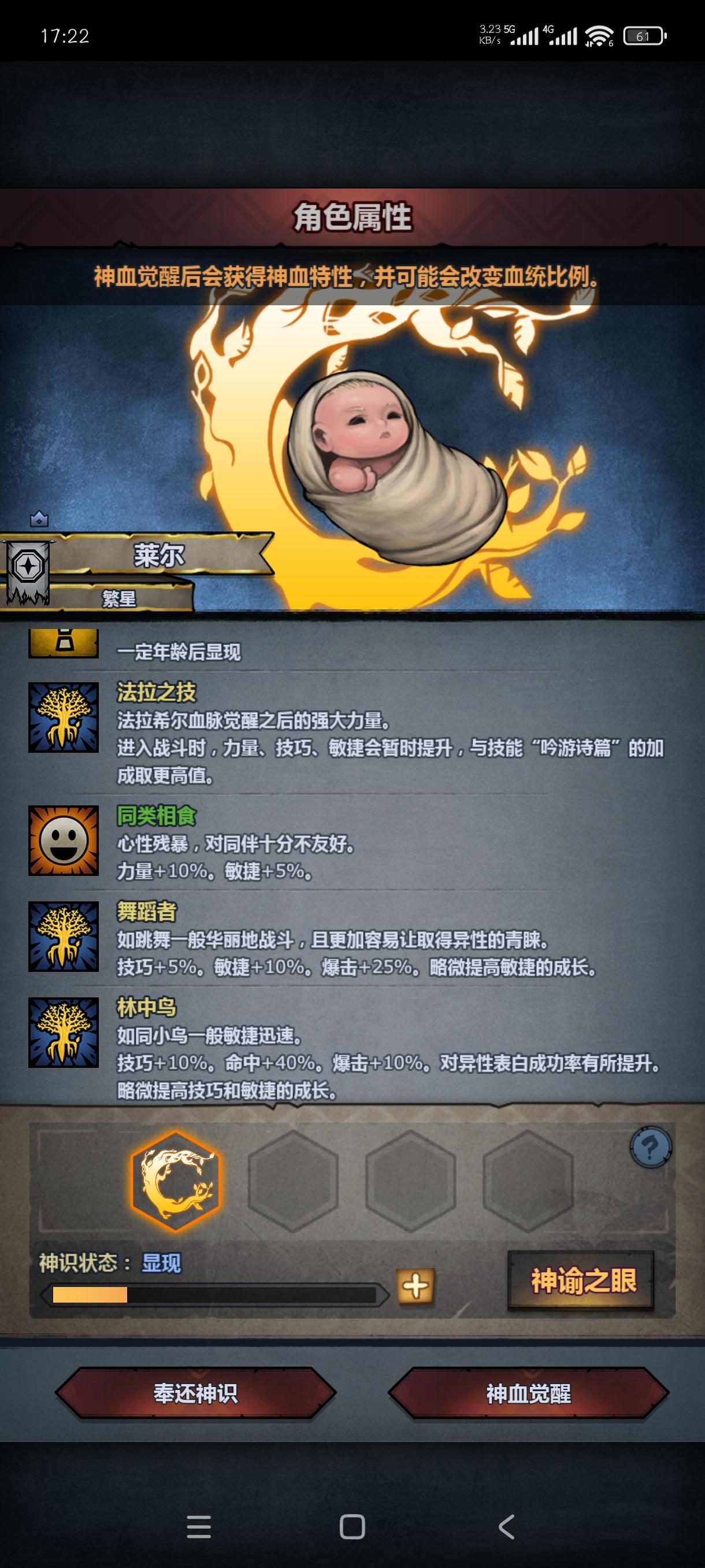 看了两天攻略基本在看天书😂太久没玩完全搞忘怎么操作了,上次玩照着攻略弄了能1级三转大剑士和大德的传家宝,接下来是弄强势职业的国家声望还是说先把塞宁,佩尔声望拉满?塞宁精灵的血统已经100在刷特质了,佩尔的还在75,唯一一个上专精灵小孩还不知道要玩啥职业,没有体质成长负重30都不到,只拿个琴都超重。另外要怎么教育他?现在是优先魔法天赋?训练所改版了不知道怎么弄顺便问问有没有宝宝级别的新手攻略,我现