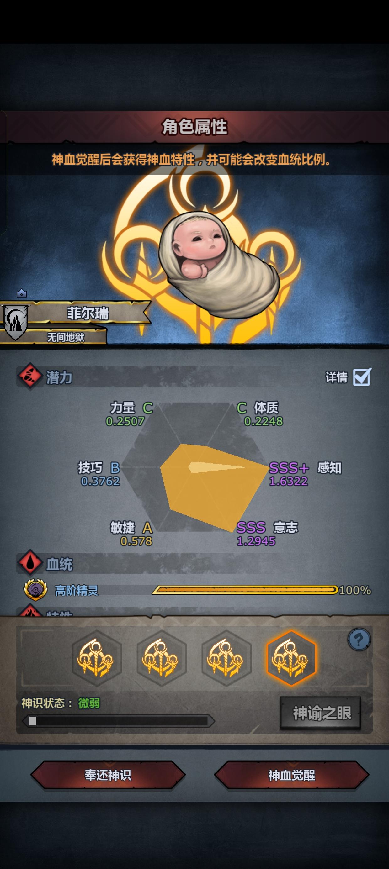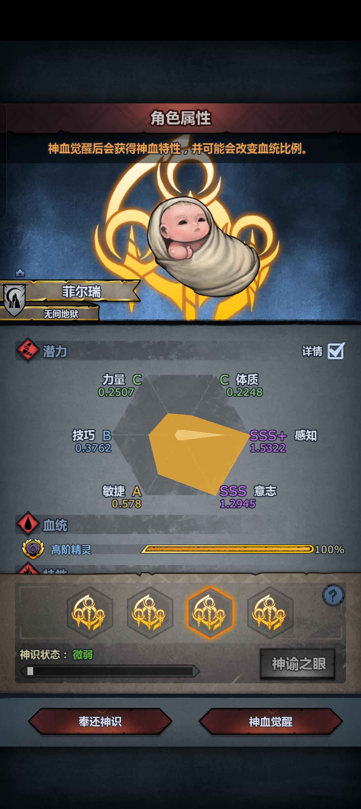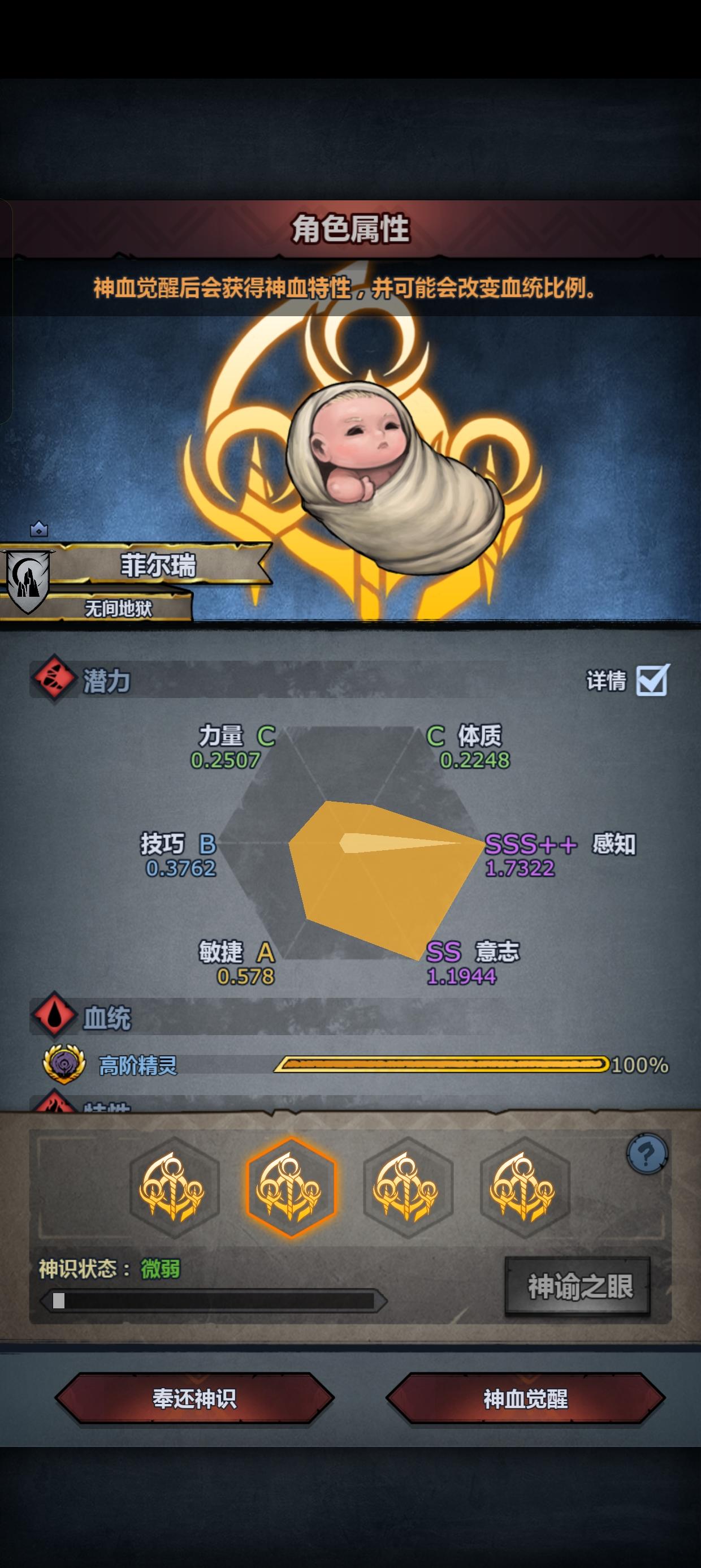 萌新第二个神子,初始特性只有上自,面板不错就妥了,感觉是不是二三好一点啊