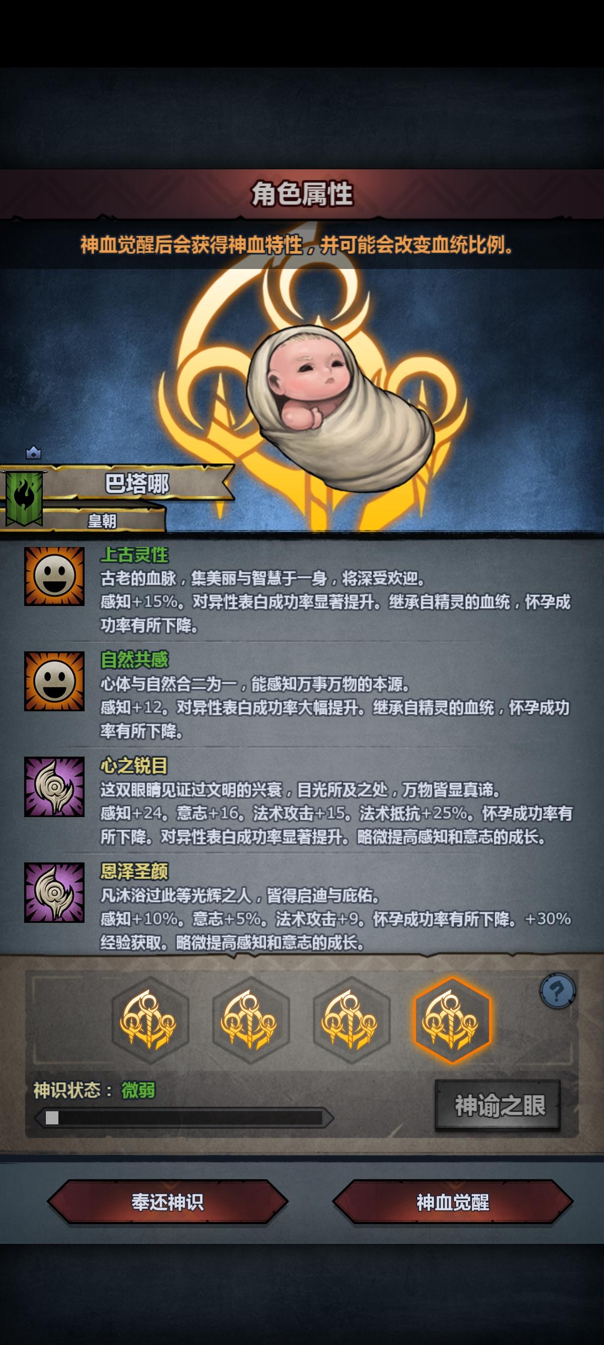 请请教一下各位大佬,这个联姻机制到底是什么啊#诸神皇冠萌新 如图,这一个应该还是比较不错的a感带有精灵血脉还没负面词条的,我在酒馆用朗姆酒招的(职业是因为想丢到炼金工坊练疗伤药结果发现根本练不起),然后城堡联姻想要配一个同样有精灵血脉的这样子,在但问题就在于,如图2,人是刷到了但活生生从招募的时候17岁一直求婚求到现在30岁都还在拒绝(明明是骑士对骑士啊也没有往上位求婚),,,