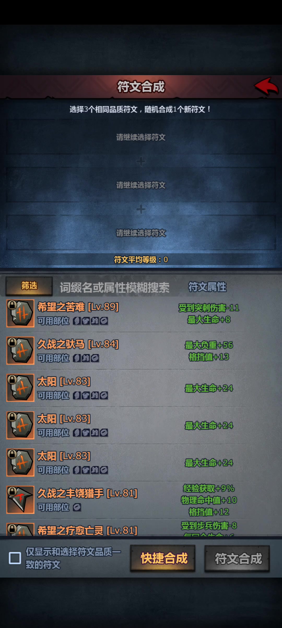符文内置等级掉了
