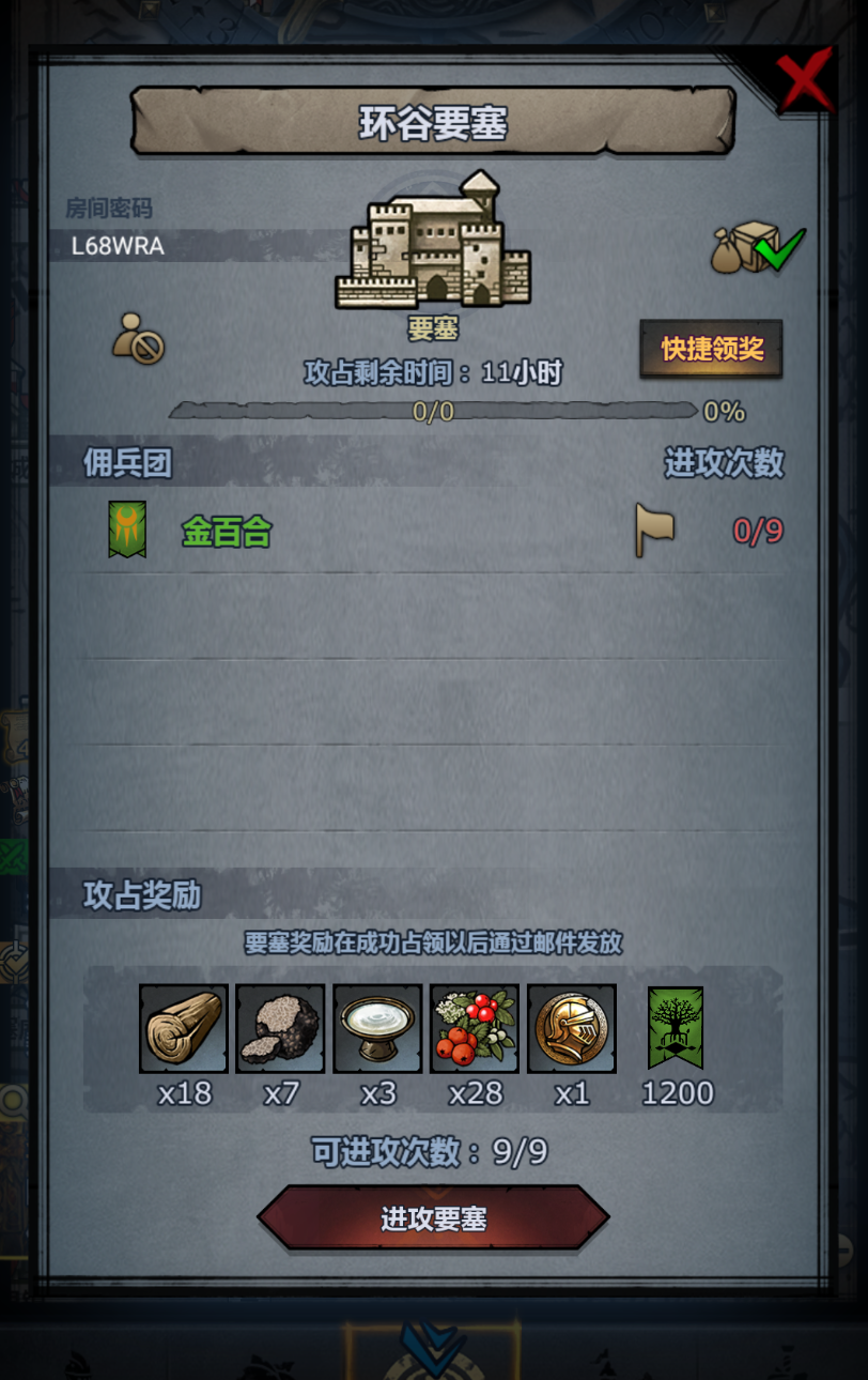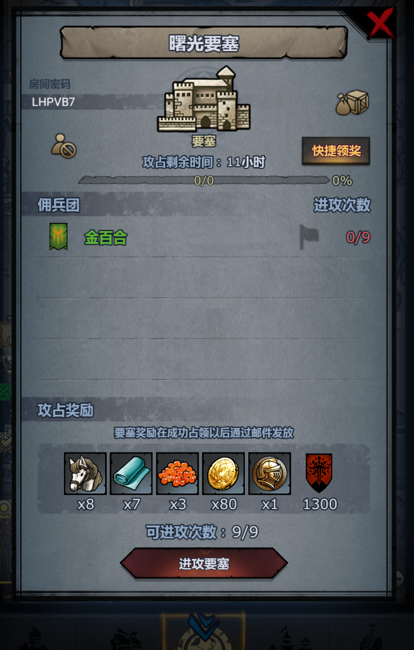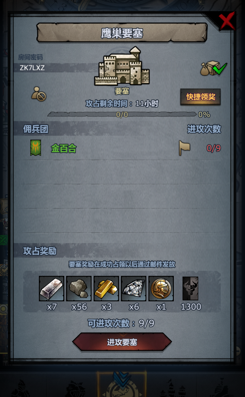 鹰巢要塞: ZK7LXZ曙光要塞: LHPVB7环谷要塞: L68WRA晚上20:00收(主塔别拆,副塔随意)
