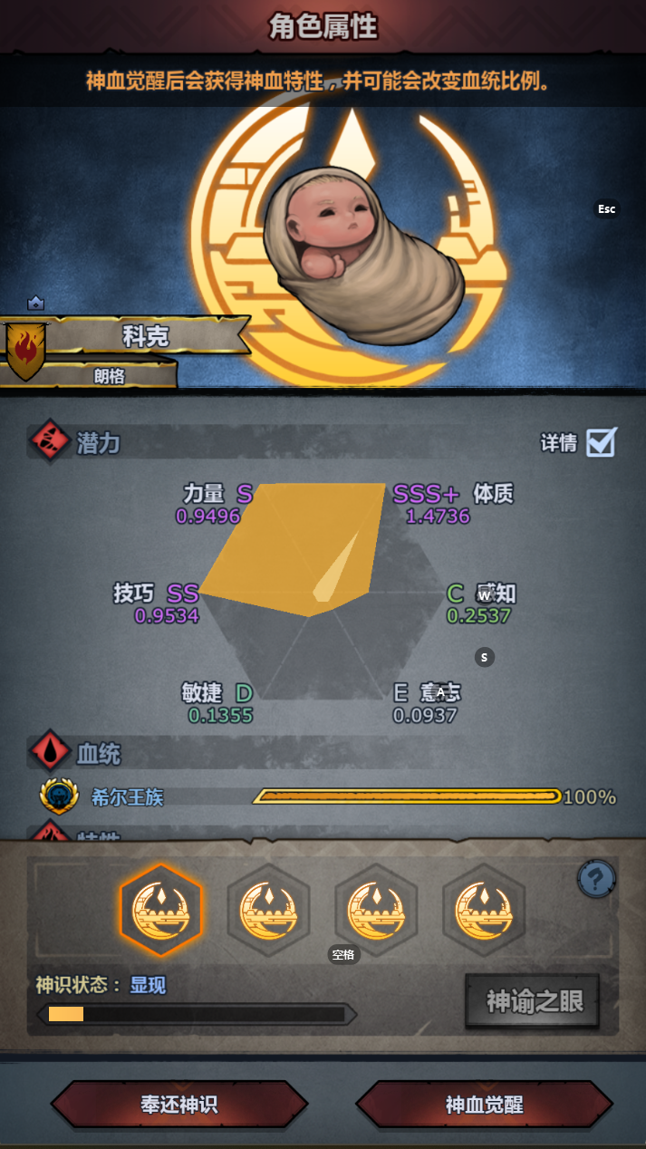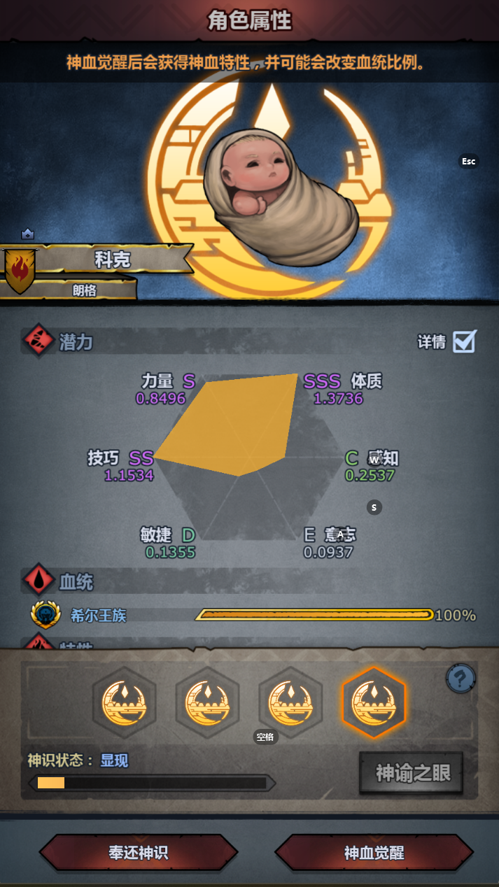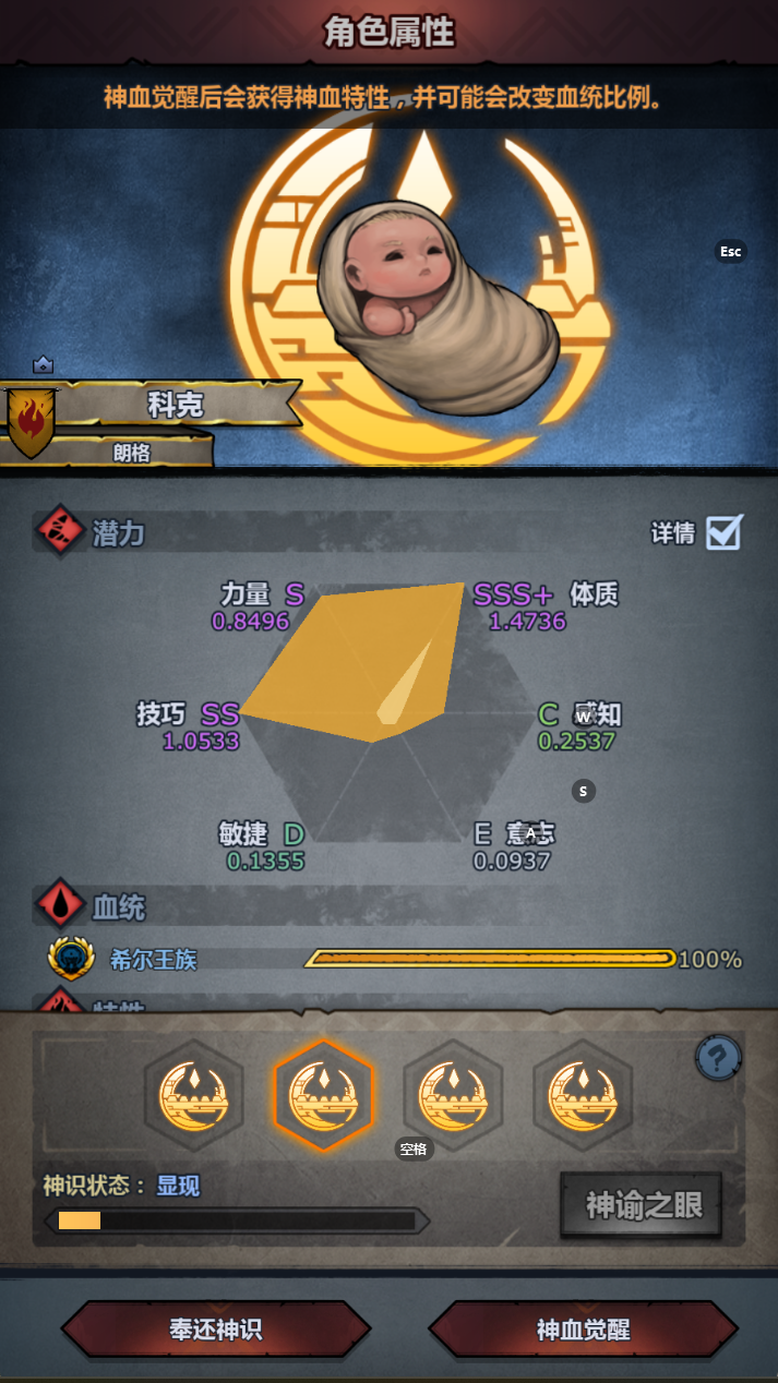 老大们,我事萌新,目前我打算先把法拉拉到信赖,然后再尊一个,现在已经漂到了伯爵(孩子纯血加尔提兰还没成年)。血脉提纯方面,有希50、宏62、切50、佩75、精灵50(敏感双A 专注之眸)、法拉50、牛头50(都还没有成年),城堡11级,能升级的建筑都升满了,有一转三盾勇小公主(62岁104级),接下来该怎么玩啊?#诸神皇冠 #诸神皇冠萌新