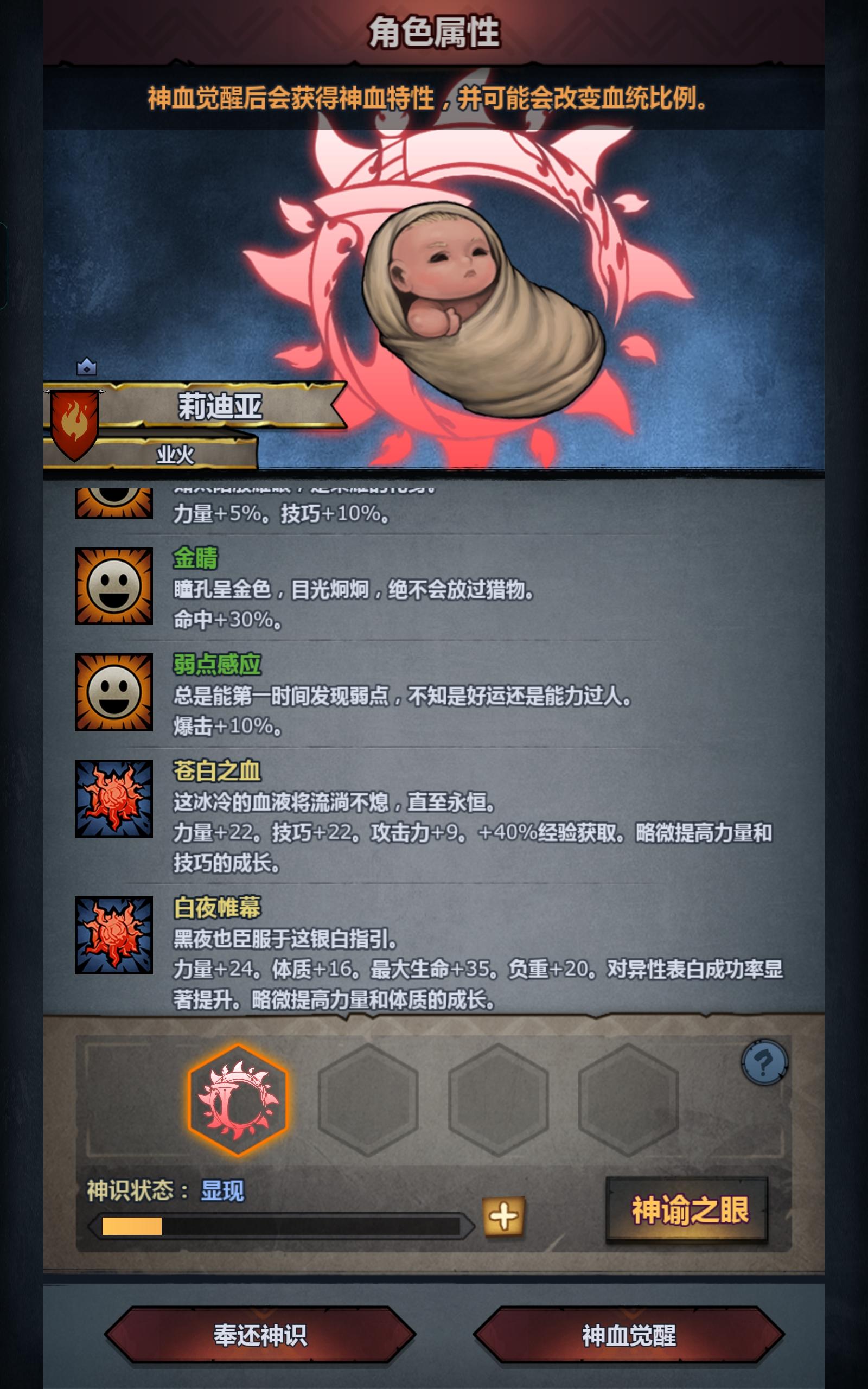 本来想混个太同佩神玩内宗的 混了几队没混出来 还要弄塞宁切瓦混血神子 不想三重坐牢 看到这个纯血苗子还不错直接妥了敏太低了没弄晨光已经做好随时暴毙准备了