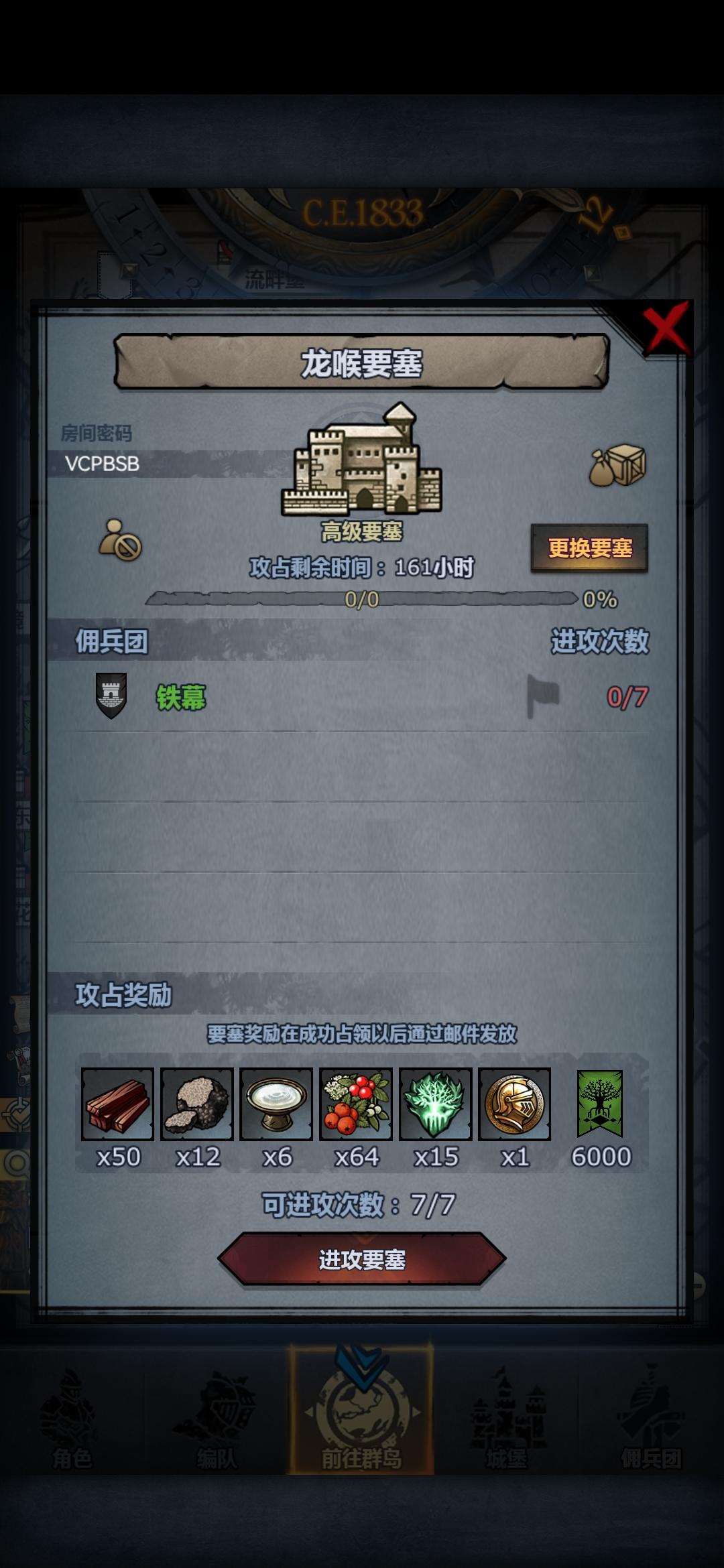 远崖要塞: UBC6SA梦魇要塞: B8D5CK圣佑要塞: 3MZPGJ