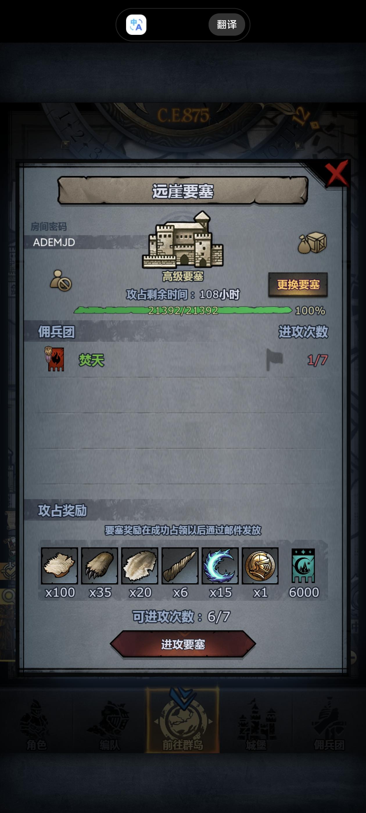 环谷要塞: 5BBSLZ曙光要塞: 7LNCET海殇要塞: 6Z8K6M日光要塞: GGMVMG周本在周天凌晨三点发