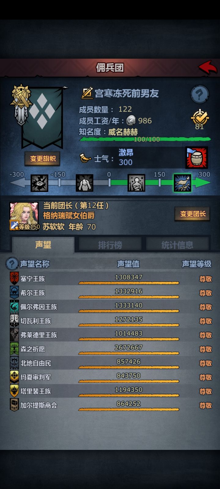 前期尊敬只考虑法拉,想配弄个信赖就得了,宴会公爵及以下一般只考虑用来刷声望,前期资源少没必要弄这个