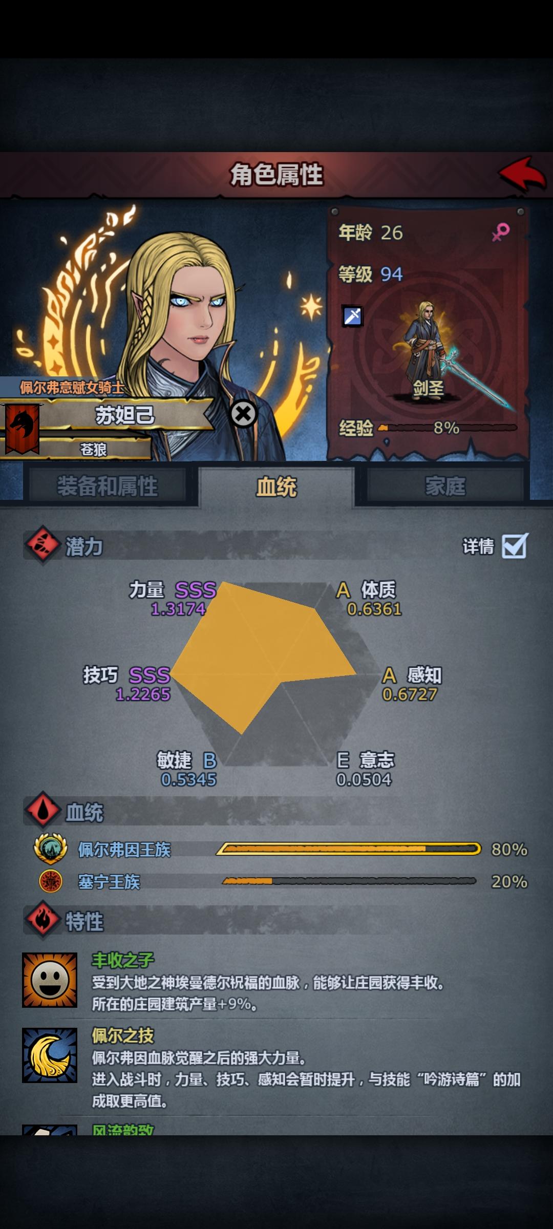 看了两天攻略基本在看天书😂太久没玩完全搞忘怎么操作了,上次玩照着攻略弄了能1级三转大剑士和大德的传家宝,接下来是弄强势职业的国家声望还是说先把塞宁,佩尔声望拉满?塞宁精灵的血统已经100在刷特质了,佩尔的还在75,唯一一个上专精灵小孩还不知道要玩啥职业,没有体质成长负重30都不到,只拿个琴都超重。另外要怎么教育他?现在是优先魔法天赋?训练所改版了不知道怎么弄顺便问问有没有宝宝级别的新手攻略,我现