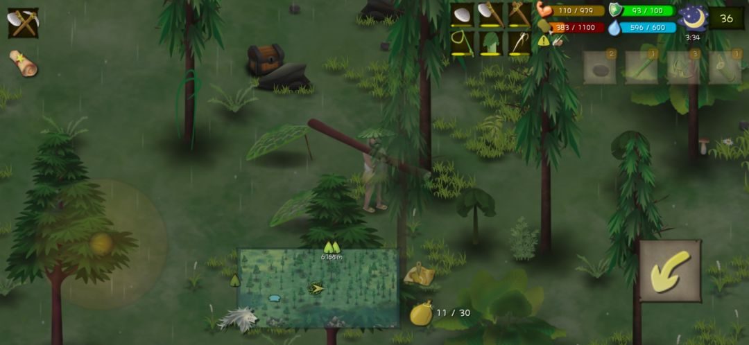 首先是地图中间上面的那个下来(老人的委托隐藏任务 )的三角口草丛可以抓到野兔和鹿,还有一个是地图左边打水弹过来的那条路用石板陷阱,可以抓到兔子和老鼠,最后一个就是地图右边的竹林一颗大的树和一颗大的竹子在中间换一个弹簧捕鸟陷阱就可以抓到山鸡有可能是鸟。 再给大家分享一个小技巧就是两天最好就把陷阱收起来,重新放一次,可以减小陷阱的损坏概率,把三个陷阱放在一起是比较容易抓到猎物的