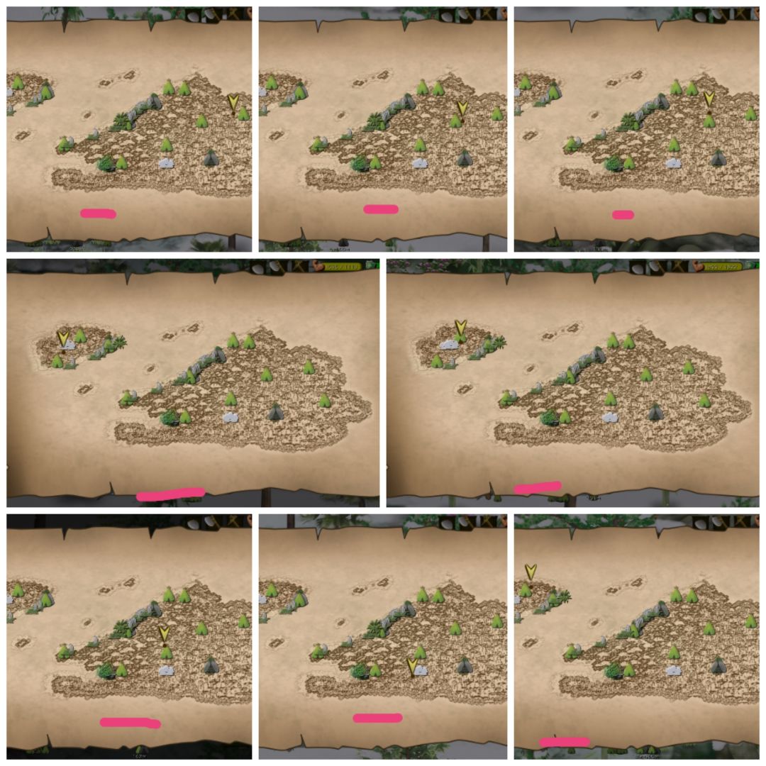我不想多说😑 看图 1、神秘的水潭 你要到右上角那里,走到干涸的大水潭旁即可触发任务,收集到的石头放在四周的文字上 2、帮助穿山甲 雨天带斧头去左上角帮助被石头卡住的穿山甲,(10天左右就是雨季)你就跟着它去最左边要是没有穿山甲就退出重进 我是真菜鸡…