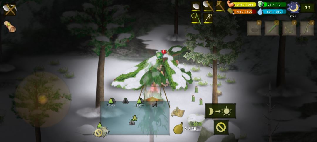 前期营地可以建在小水潭附近哦,合理饮用小水潭,因为第二天就会变成石头,不过不要紧,在小地图里,你往下走远一点遮住石头在回来,小水潭就变回来了。地图我印象中是有6个水潭,大家可以自己选择合适的地方定居。 开局制作工具的先后顺序:①斧头、②竹竿套索、③木锄、④石刀、⑤竹叉、⑥弓、⑦箭、⑧除虫剂、⑨骨针、⑩炮竹 (PS:1-7个先做,8-10可以选择做) 在下拙见: ①大家要小心红土地上面的荆棘,碰一下