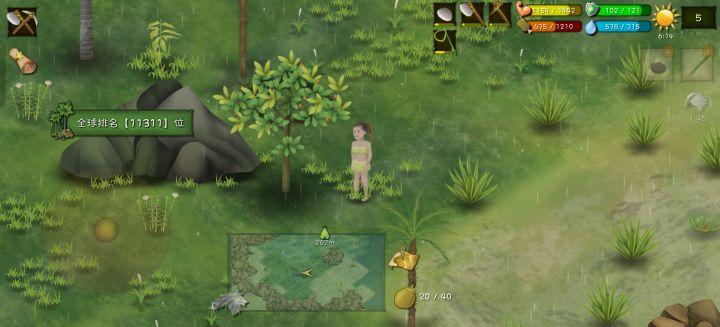 先游过大河到整个图最上面浅绿色的地方在如图地方找到大石头激活任务(注意看小图)认地图技术不好的朋友可以先走到地图右上角 然后往左走 穿过竹林就是了#挨饿荒野 现在去找一些鸟窝掏鸟蛋 在鸟窝获得第一个碎片跑回大石头的位置显示需要粘上去 所以带上你的胶水和碎片粘贴好以后我们去靠下面的大石头边找蛇蛇然后找些能挖的地开挖然后去钓鱼鱼粘到大石头上有问题留言哦~