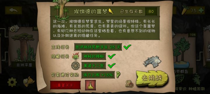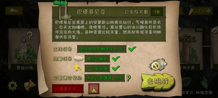 泰国,巴塔哥尼亚,菲律宾,非洲,沼泽:早期带着懵懂的一股劲玩,不懂开兽袭有稳定的肉来源。特别拿出非洲:前期忍忍过去了,中后期简直是刷胡萝卜的神图。我不氪金,所有胡萝卜85%来自这个地图。刷萝卜大法越发熟练后,配合广告大法,有次记录过差不多一小时一百二十多的萝卜。高山:开始体验感变牢,迷宫我是不会在进去的。噩梦:看攻略就觉得可能是臭最难的地图,明智的我决定最后一个做此地图的隐藏任务。鉴于我此前