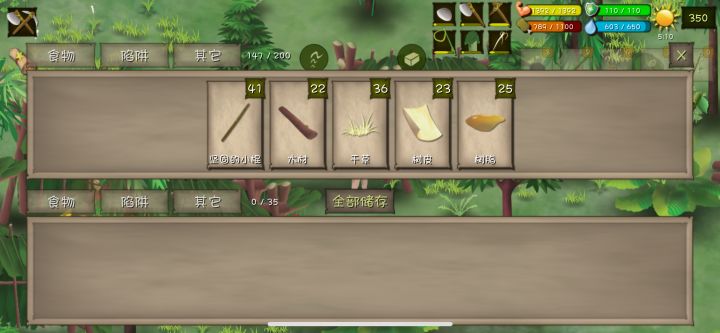 题主主要讲几点:1,营地建设2,陷阱布置3,资源采集4,狩猎和通过兽袭首先第一点营地建设,营地最好建设在一大片空地而且离水源比较近的地方,题主建议把营地建这这里这个地方离水源近,而且周围可以设置的陷阱位置也多,一些比较有用的资源也更方便采集,也刚好在地图比较中间的位置,去左边或者去右边都不会太远,算得上完美的营地。因为库存肯定不够,所以中期可以多建几个营地摆在一起,一个装材料,一个装