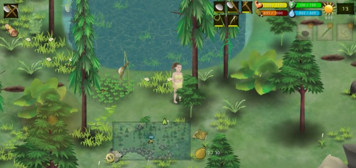 还要过滤水,重开第三把了没有吃的,地上没有长的地瓜什么的,前期肝营地工具出来后走不远了,可能我的定居点定错了,小水潭怎么刷呀呜呜呜变成石头了我离它远一点也没变成水潭