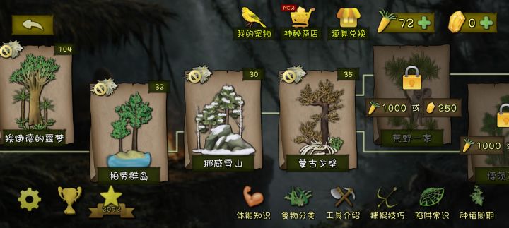 #挨饿荒野 新图玩了,前期找不到小豹子刷新点在哪浪费很多材料找不到肉吃导致差点缺营养死掉。没玩之前很期待亚马逊河里有大森蚺和大鲶鱼,造型奇特的奇花异果,但是并没有有点小失望。种了几个小果树也差不多可以成熟了,这地图还是蛮多小果子的,就是种子掉率有点低。那个重压陷阱烂了两个都抓不到,可以推荐一个位置嘛。最后就是你们都去玩新地图了没?