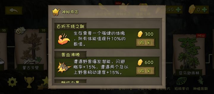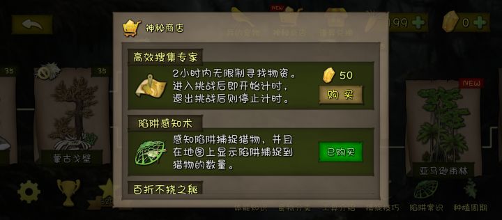 陷阱提示和荒野一家也移到了黄钻商店