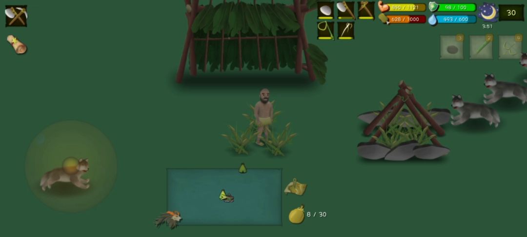 理论上3个竹刺可以左右放两个猎杀陷阱,直接无伤刷俩狼。快一点的话狼连肉都叼不走,直接白票。 材料不够两个竹刺也可以,站位好的话狼也碰不到人。