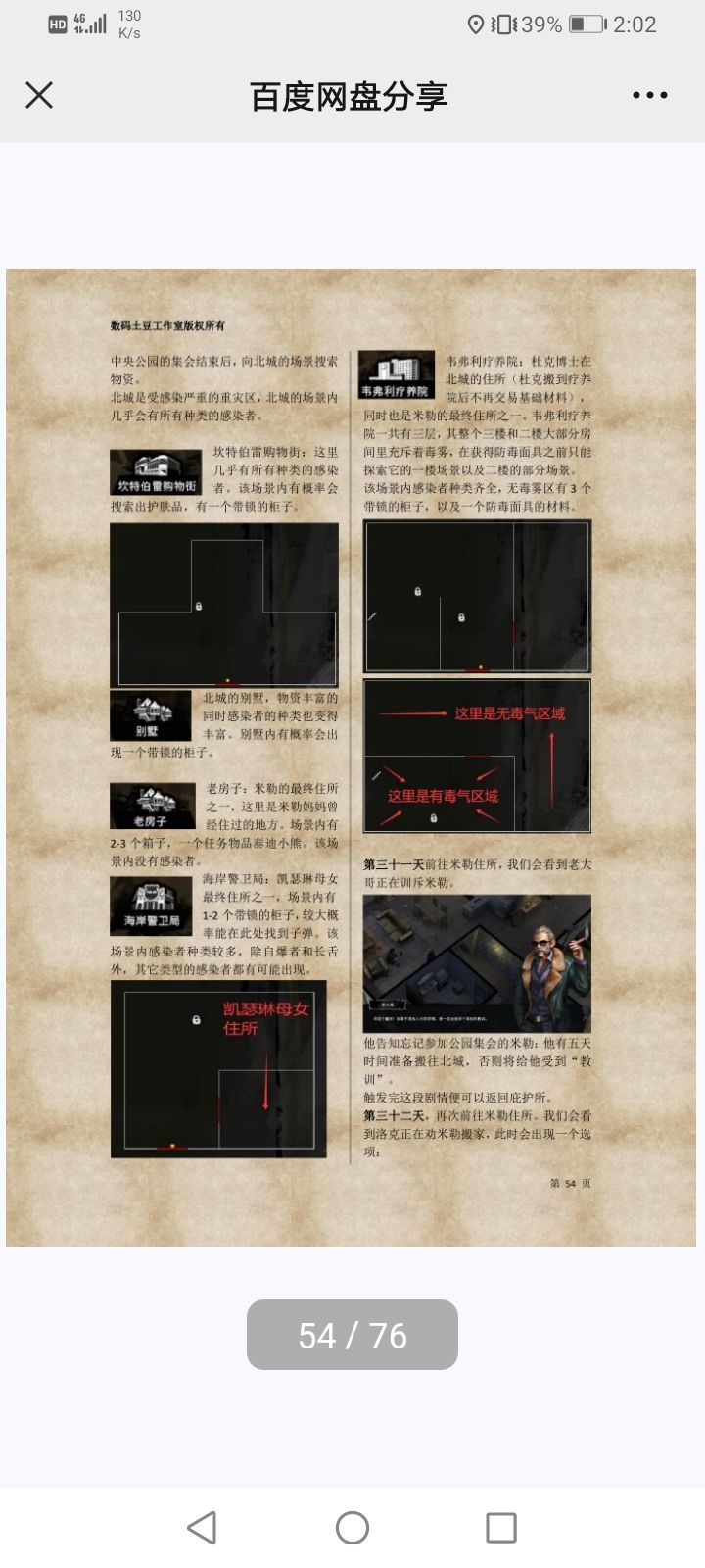 这游戏对新手来说需要花费大量时间记材料,而且新手看攻略也没有任何作用,毕竟才开始玩就去看没接触到的东西,说白了看攻略玩游戏还不如不玩。 发这个攻略是给50个小时以上的玩家看,不会太详细但重点都有,只有玩几个小时都能看的懂。 游戏角色有两个,选女的。困难模式第一章跟剧情差不多,只不过僵尸防御高很多,剧情那一把砍刀可以用到第四章,而困难模式只能用到第二章,打僵尸背刺都需要2~5刀,更别说第二章的修好车