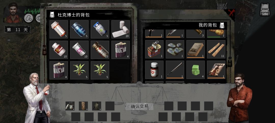 内容很多,所以按照物品一个一个说。 1,人物建议选男的,女的血少移速慢,攻击前后摇长,地狱难度非常容易暴毙,地狱难度物价很高,一般情况不要交易除非急缺,所以女主的优点被弱化了,相反男的战斗力更重要。 2,木头,前期主要用来烤火加心情,性价比很高,没有造出音响或高级洗浴之前,只烧木头加心情,加心情的其他物品可以全卖了。 3,塑料,布,皮革,橡胶,酒,绷带,夹板,捡来的够用。 4,铁,中后期缺可以适当