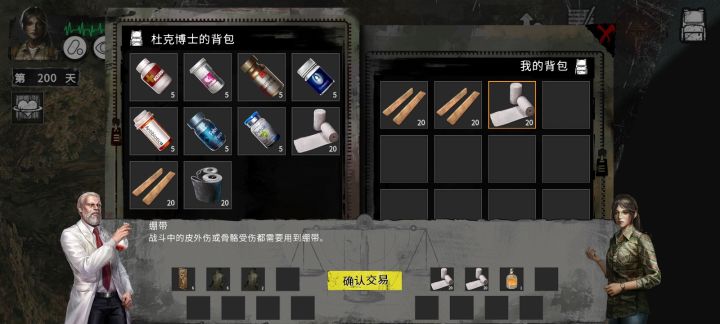 4酒=4酒+1橡胶 用橡胶买东西,再用酒把橡胶置换出来,理论上4瓶酒能把博士搬空,但奇怪的是,1绷带≠1绷带,不理解