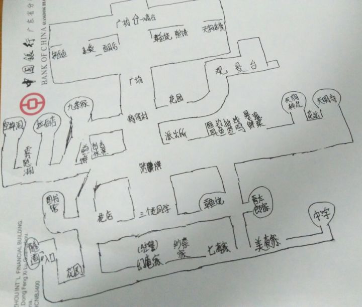 方向百分之百正确,但是比例和路线长短不准确(划重点)。字丑,但主线任务需要去的地方一个不落,所以走主线剧情挺简便的。