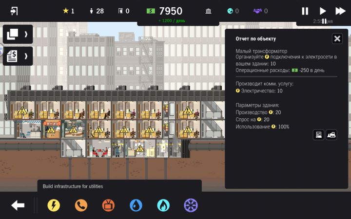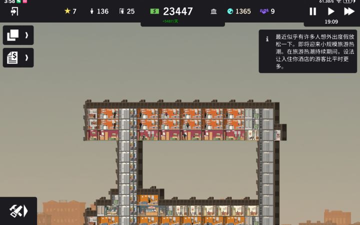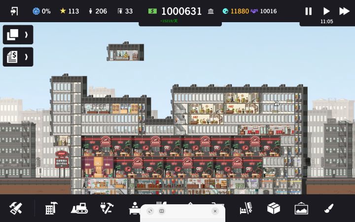 摩天大楼不只是钢筋和玻璃,还是错综复杂的生态系统,人们在这里生活和工作,追寻着不同的欲望和理想,作为大楼的管理者,你须要放眼大局,管理大楼的每一个环节来维持它的正常运转。建造办公大楼、娱乐中心还是豪华公寓?这些全由你掌控。自动售货机、喷泉,甚至瑜伽课程,这些五花八门的需求也得考虑进去。别忘了你是一名商人,你必须留意财务盈亏,计划好未来的投资,若经营得当则能声明远扬,不愁没有新的生意,反之只能扫