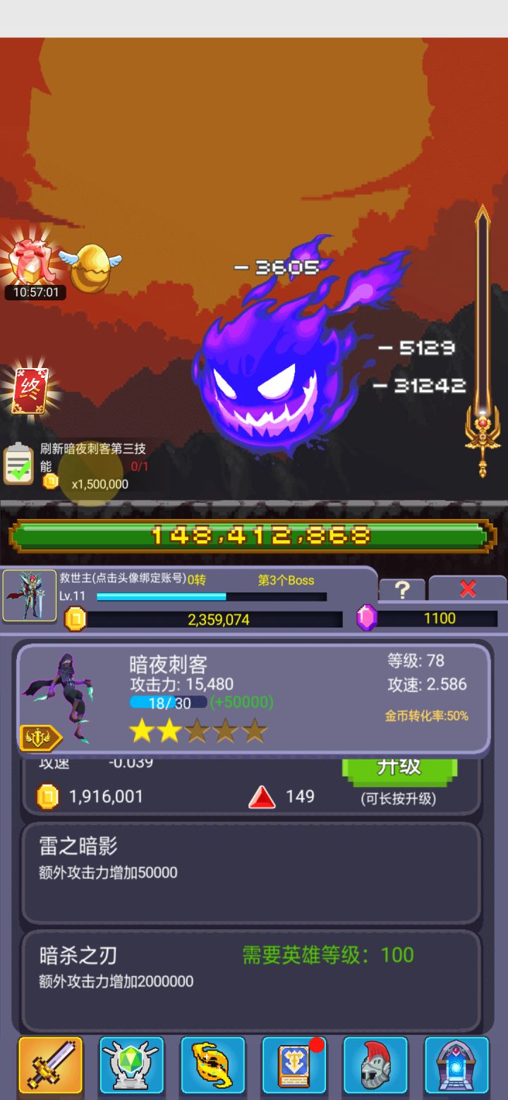 玩法上还是挺靠谱的,就是偶尔冒出来的一些bug比较毁心情之前玩的时候死活找不到的一些知识点我在这总结下:1,攻速上限0.2,攻击没有上限2,看视频给宝石,每看一次加一个宝石,最终上限是看一次广告50个宝石3,转生之后,金币清空,英雄清空,买宝石英雄的钱会返还。你上一次给那些英雄买的技能还会保留,就是你重开之后那些技能都还在,所以前期也可以安心刷技能。4,升星时,攻击提升当前攻击力的30%