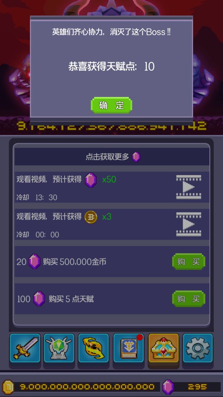玩法上还是挺靠谱的,就是偶尔冒出来的一些bug比较毁心情之前玩的时候死活找不到的一些知识点我在这总结下:1,攻速上限0.2,攻击没有上限2,看视频给宝石,每看一次加一个宝石,最终上限是看一次广告50个宝石3,转生之后,金币清空,英雄清空,买宝石英雄的钱会返还。你上一次给那些英雄买的技能还会保留,就是你重开之后那些技能都还在,所以前期也可以安心刷技能。4,升星时,攻击提升当前攻击力的30%