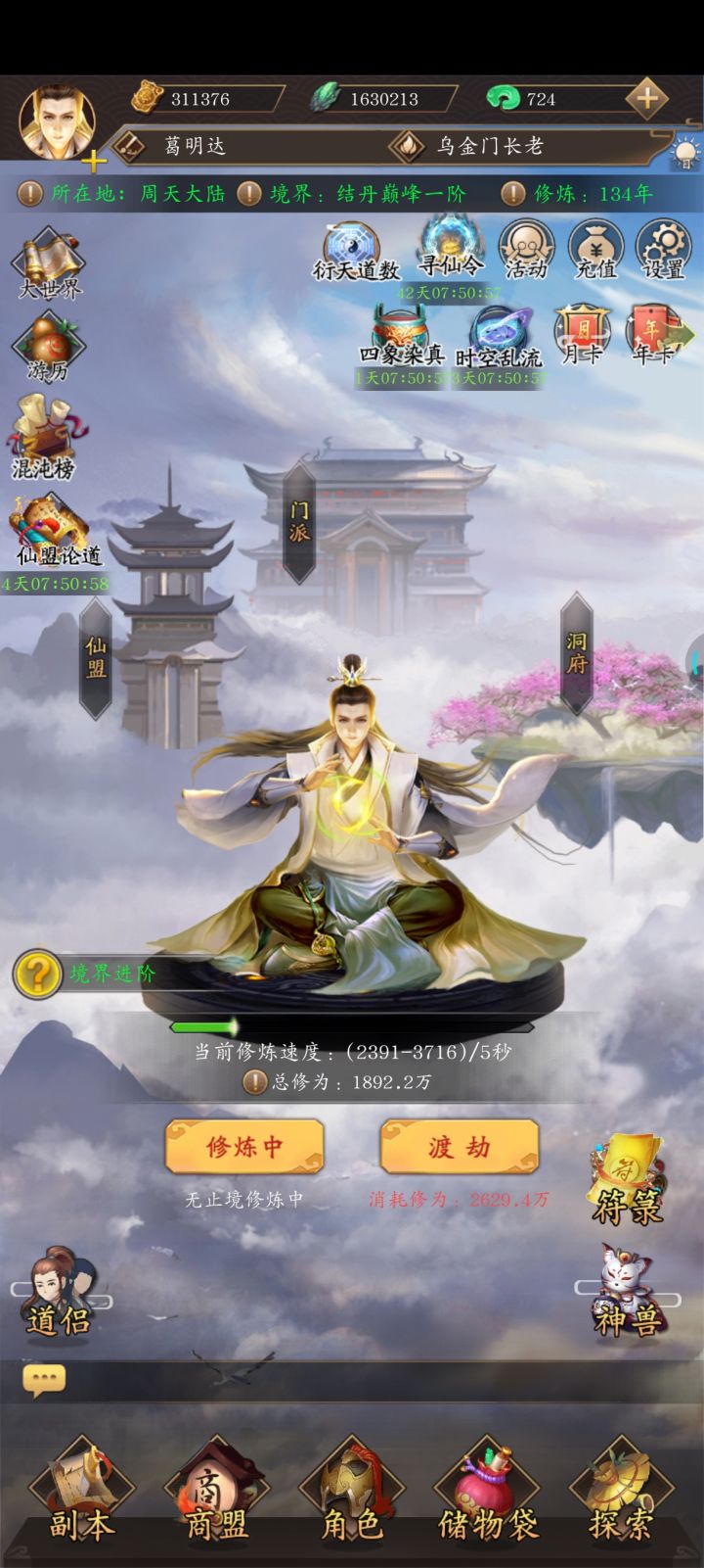 ①首先进游戏以后签到补签以及进群领取新人福利,回收古剑令大概会有400仙玉左右,第二天回可以在天源堂首层金童购买增加修炼速度的(混沌秘法)