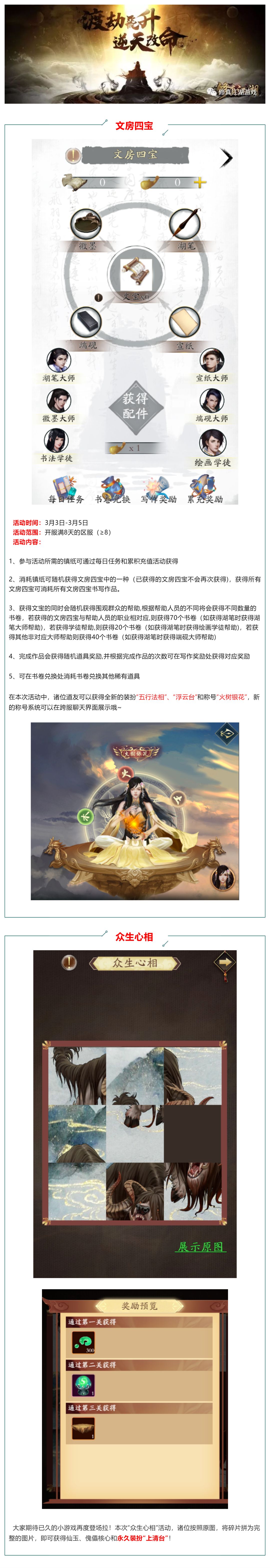诸位道友安好,《修真江湖》将在9月5日15时更新4.4.0版本,届时服务器将无法登陆,预计更新时间为30分钟,会根据实际情况提前会延后,请诸位道友留意游戏登录公告哦~ 更新记录: 1、加强玄天剑阵,炼狱魔心传承(详见末尾表格) 2、新增部分道友投稿的浮光幻境事件 本次更新后,101-102服,103-104服,会进行合服,请诸位道友提前做好准备~以下为对合并区服造成的影响,请诸位留意: 1、混沌榜