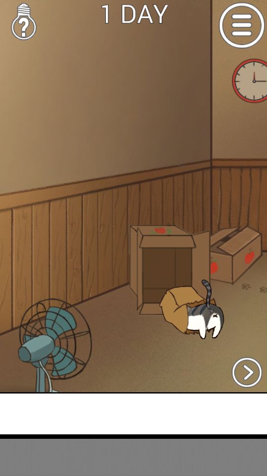 文字攻略::https://www.taptap.com/post/50704397推荐流量党使用~————————————第一关:猫在左边房间的纸箱中第二关:打开柜子拿到猫粮,倒在左边房间的碗里第三关:左边房间窗帘后有一根逗猫棒,能把右边房间桌子底下的猫引出来第四关:左边房间的书架上能找到猫粮,倒在碗里。第五关:拿到金鱼缸,拿到渔网,用鱼网把金鱼捞出来,先把金鱼缸放在沙发前,再把金