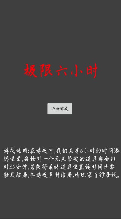 《极限六小时》是一款具有高难度的解密文字游戏,画面比较粗糙,模式十分快捷,具有多种结局。