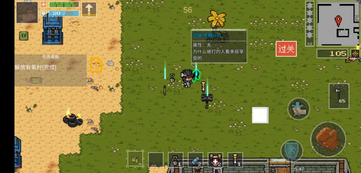 第一步,通过走a打死几个农民把锄头升到3级第二步,挖地第三步,快速过关拿一个群攻,一个唯一道具拿被打回血,被打反击,血包,502每一层前几次挖地还会给钱然后,通关