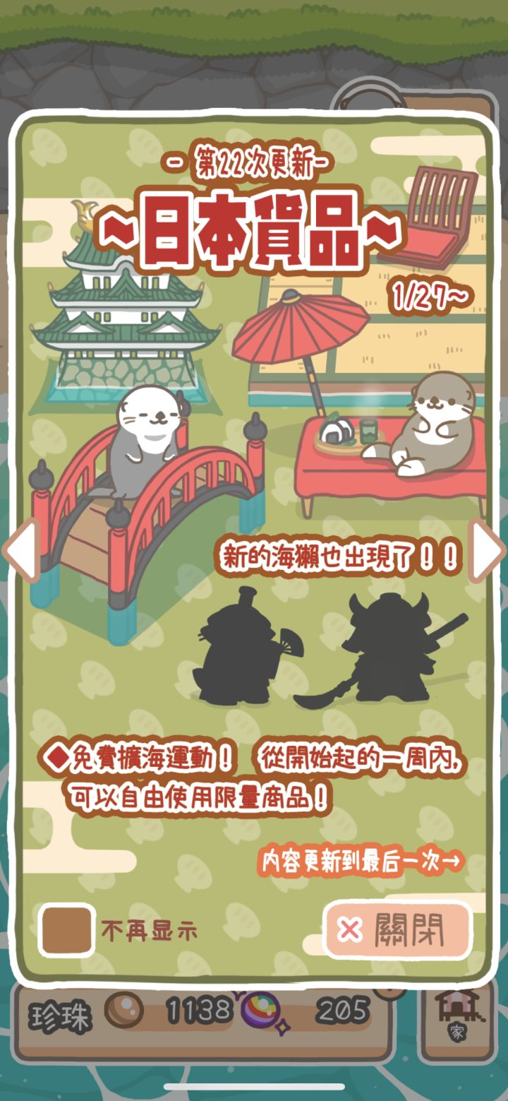 现在图鉴差7只 其中五只是差物品:小木马、雪球、魔女挖洞、发光圣诞树、万宝锤。除了这五个其他物品我都有了。最后一个科学怪獭和一个外星獭 我应该是有物品但不知道配方 一直没见过。如果有人养过这两只,在他们提升亲密度到任意等级的时候都会出现一张感谢图(可以截图或者分享的)那张图片里有吸引他来的主要物品(组合配方只显示主物品),有没有小伙伴分享一下经验~