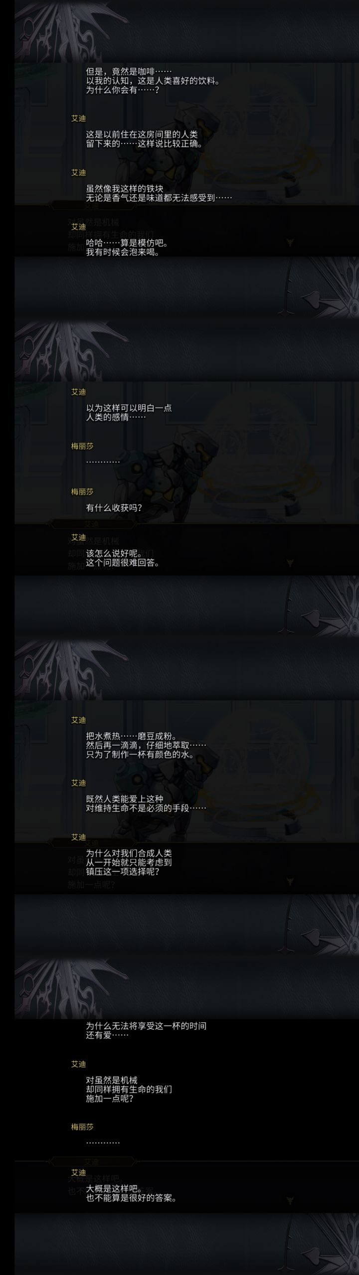 海量的主线支线剧情+外传+隐藏剧情等,前期也几乎没有新手引导,建议前期玩的时候不要看攻略,先自行游玩,等熟悉的差不多了在查看攻略。这游戏和红酒一样,玩的越久才会越沉迷!前期需要肝一点,各种资源要拿到手,主要是抽卡拿强力角色。后期啥都不缺了基本上就是养老了,每天上线不超过10分钟,总体还是能给到五星好评的,毕竟真的算是良心游戏了,不比你氪金还能让你玩的爽。