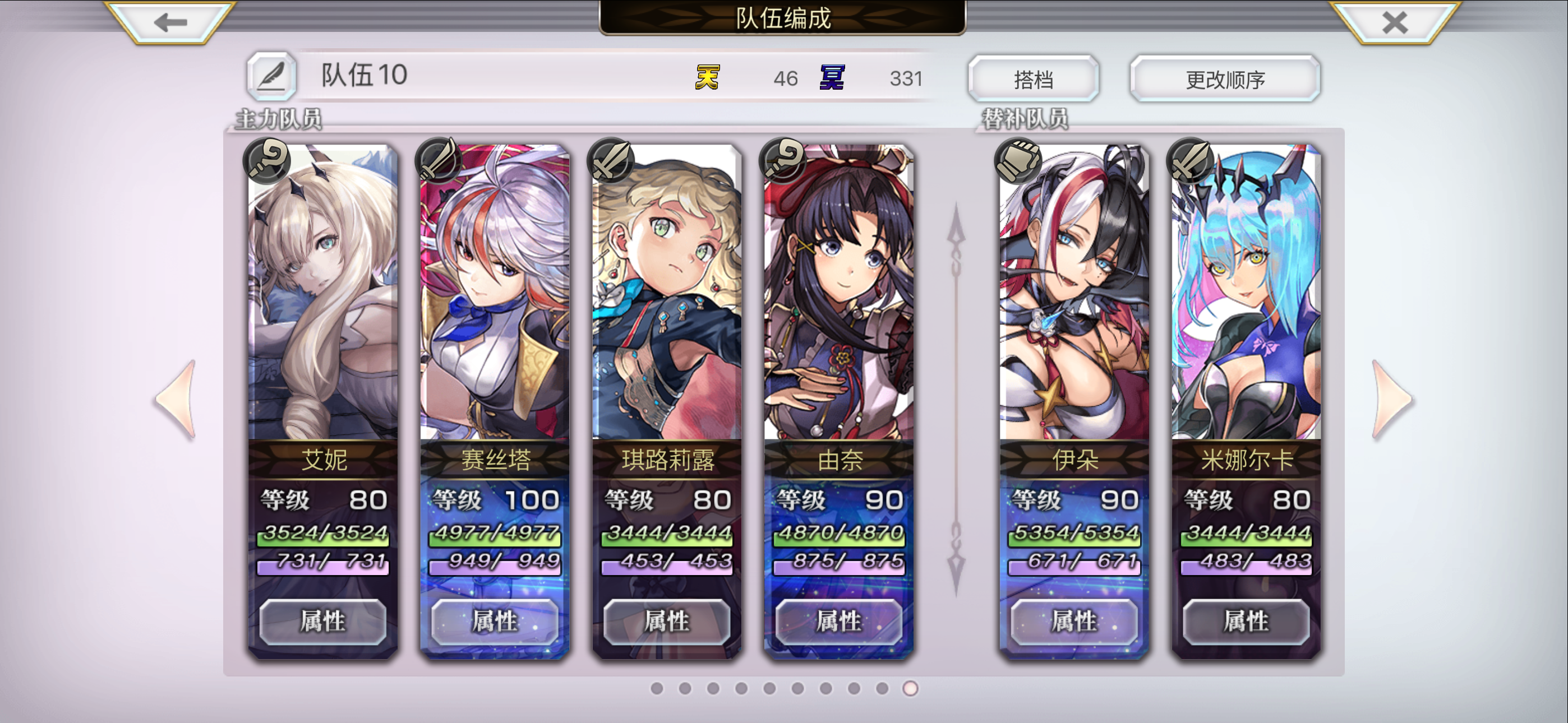 感谢✈️社🙏🏻没想到有一天还能组出一个能打书架的纯帅哥队伍 as炎拳+es刀哥+胧+大哥,后排千夜/es时雨+as杜伊两个灵晶架分别给胧和as炎拳 as炎拳降耐辅助+副C,疯狂之力觉醒雷az,出af的两个轮次可以打两个高倍率星爆+2发高倍率星爆枪(4T能打出300倍核弹) es刀哥纯辅助,给全队上buff、心技一体+右手给胧加面板属性+回蓝保证as炎拳能打出两次爆破枪 胧哥大主C,吃满增伤打伤害,