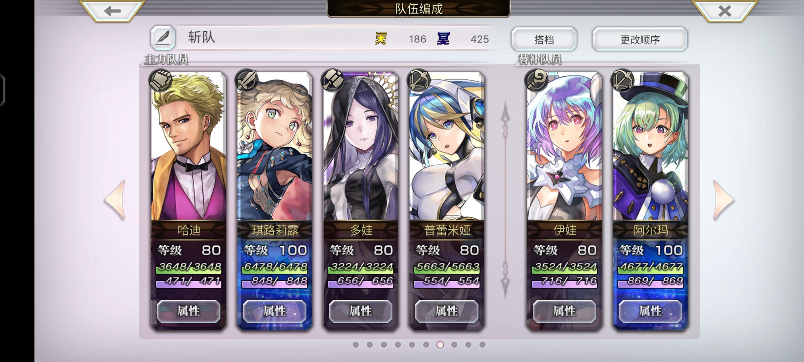 核心思路是哈迪平a变化技破boss限定的阵,然后7616开晶阵,多娃,机娘负责防御端,多娃可以防击飞,机娘一键降力智+血盾,机娘有斩,突两个招数,可以帮7616砍斩盾,多娃带巨龙帮着一起砍突盾,打盾留给as哈迪处理就好。前面三个阶段7616配合摩可技能重置心之剑补伤害就行。最后阶段求稳的话就在第三阶段时稍微存点af,我最后阶段打错了,哈迪还没破魔阵就换下去了,最后是在boss开的魔阵里打的,也是可