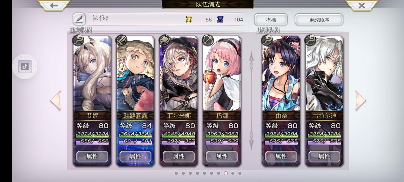 没有风阵,没有es月华,没大姐,只能另想办法。伊露露虽然腿短,但是风奶有50加速。 人鱼弓,专武伊露露,as杜拿利斯,莱普。