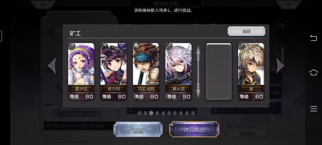 阵容解析 非必过阵容 翻车点:狼姐被点名,狼姐被打两次。 1.索伊拉非刚需,可更换为任意风词条天角色佩戴嘲讽灵晶。(不戴也行,可能导致boss非必死技能两次打到狼姐翻车) 2.修杰特,上痛。 3.贝尼迪特,砍耐。 4.狼姐二刀神狼输出 5.需全员佩戴九死一生。 6.贝尼迪特第一回合速度要比狼姐快,建议装备先置攻击武器。 7.如果有当期增伤角色,则无需后排架子。(上期测试,伤害完全足够)