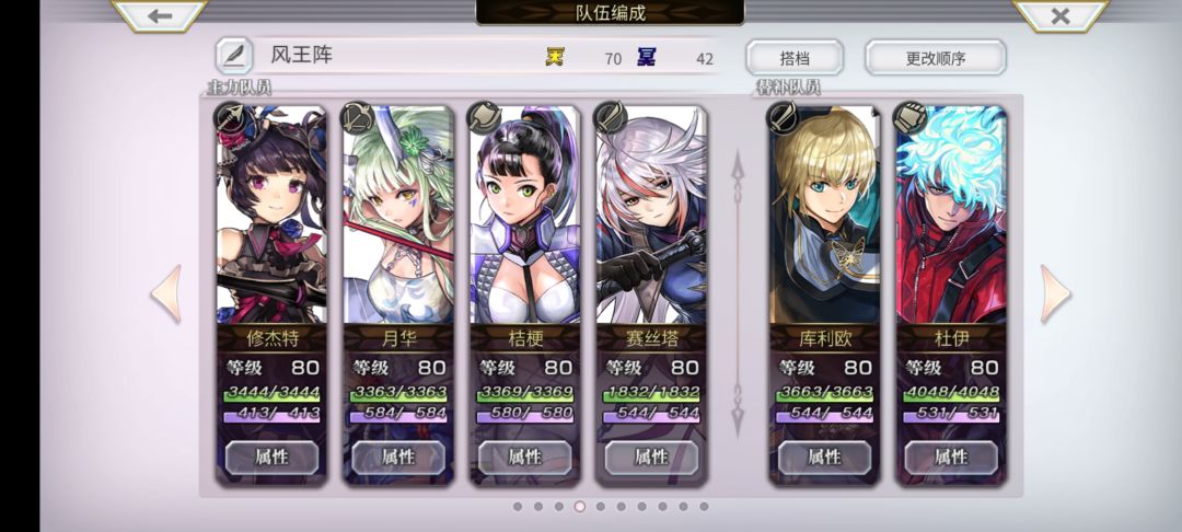 狼姐带风队,打条没啥观赏性,核心输出饿狼断。 设置也简单,修杰特,月华,桔梗,上个毒痛,爆伤,砍耐buff即可,狼姐二刀狼一次加好状态。然后就疯狂饿狼断打输出,其余角色打条技
