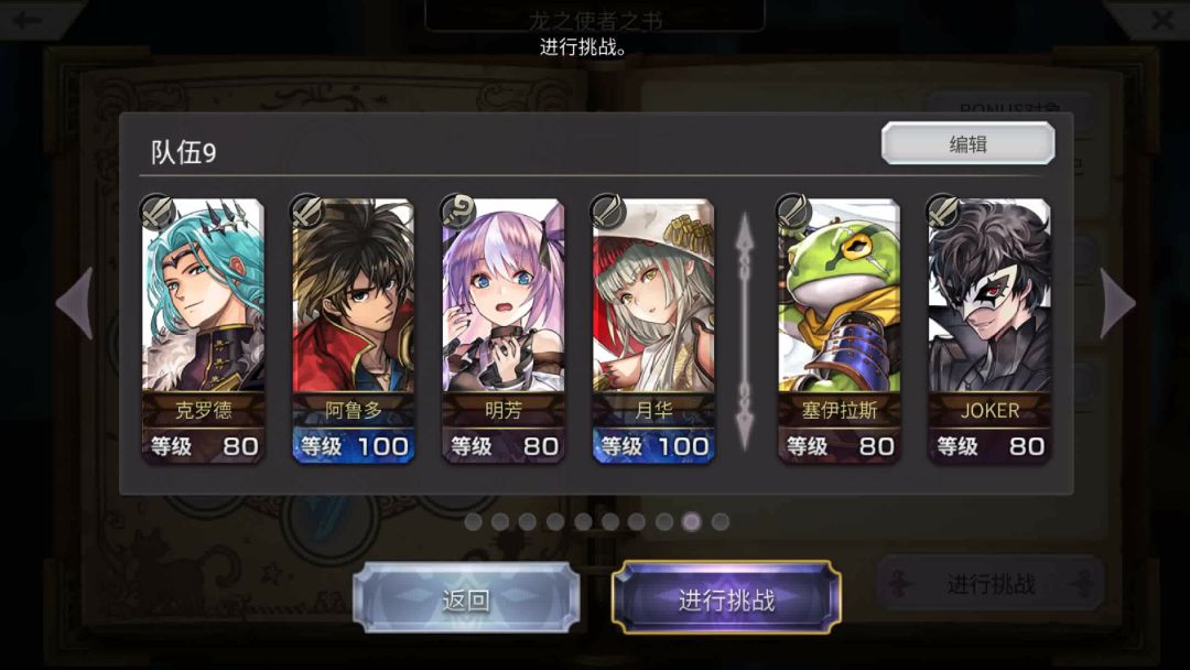 一直以来没发过这两个书架, 今天补上。 算是弥补遗憾。 队伍有点现在的官zhan前朝的的。。。 不过保证过就是。 龙岛! 先打盾。 然后输出。 注意点会踢人,(点名?)等等。 主角书架。(阿鲁多一定站在前排,带专武。) 没啥说的, 刚出的时候最难书架。 还需要凹分。 注意阿鲁多普攻。 守护的时候注意回合。(推荐火剑等等)