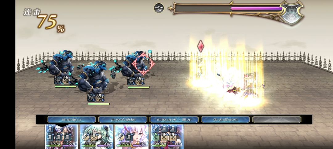 因为对面是阴阵展开,且无法用属性和武器阵顶,这里开始就不用as雪乃弓突队了。后续全部可用闪击打队完成。 队伍中需要有一名成员带痛,小黑锁血需要守护保命,其余无特别要求。后排架子(hp锤、火锤、hp失落实验室、全能失落实验室、全能甜点)