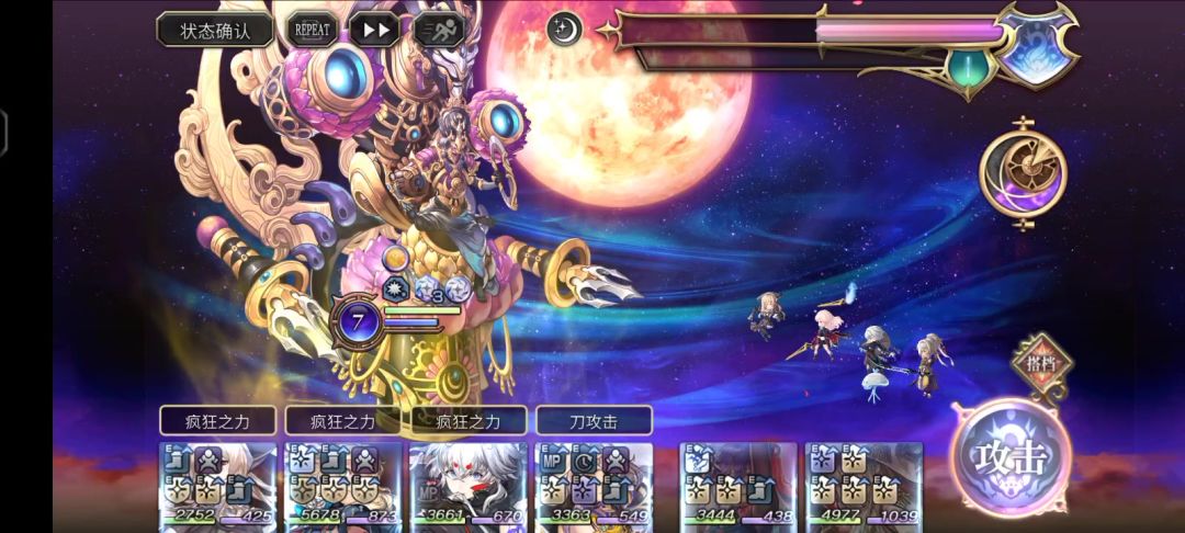 继阿鲁多的书架通关后,妹妹的也过了,这个伤害机制也是简单的,得带菲奈上阵,不然满AF状态15000,带了就7500固伤,妹妹的巨魔恩典能免疫一次固伤攻击,全局AF必须点掉,不然就得吃满全队7500固伤,输出手脆的血量得到7000,不然最后回合妹妹放完天使之歌(无削弱智力加耐),即使点空了AF,还会有2500全队固伤,最好输出手是有星导的,输出手得一回合打掉一次妹妹的复活,不然大地结晶之力会让你老实