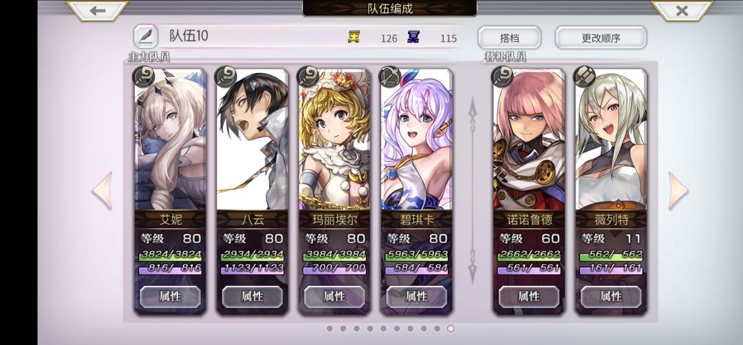 有艾妮、as伊法、es多娃、阿尔玛、碧琪卡、as米斯特蕾娅。 打过了,就前四个人。 阿尔玛主输出,万灵-疯狂-乙太*3循环; 伊法给阿尔玛上胜利祝祷,阿尔玛哑火的时候补个极光和信仰; 艾妮给阿尔玛转阴,阿尔玛哑火的时候补女神巡礼和蝙蝠蔷薇; 多娃骑士-月蚀-深渊轮流打。 上场开条,阿尔玛开疯狂和覆写,其他人按照阿尔玛哑火对待,上buff,只要月蚀打出来就不怕睡。 灵晶带七个力智速减益耐性P,其它正